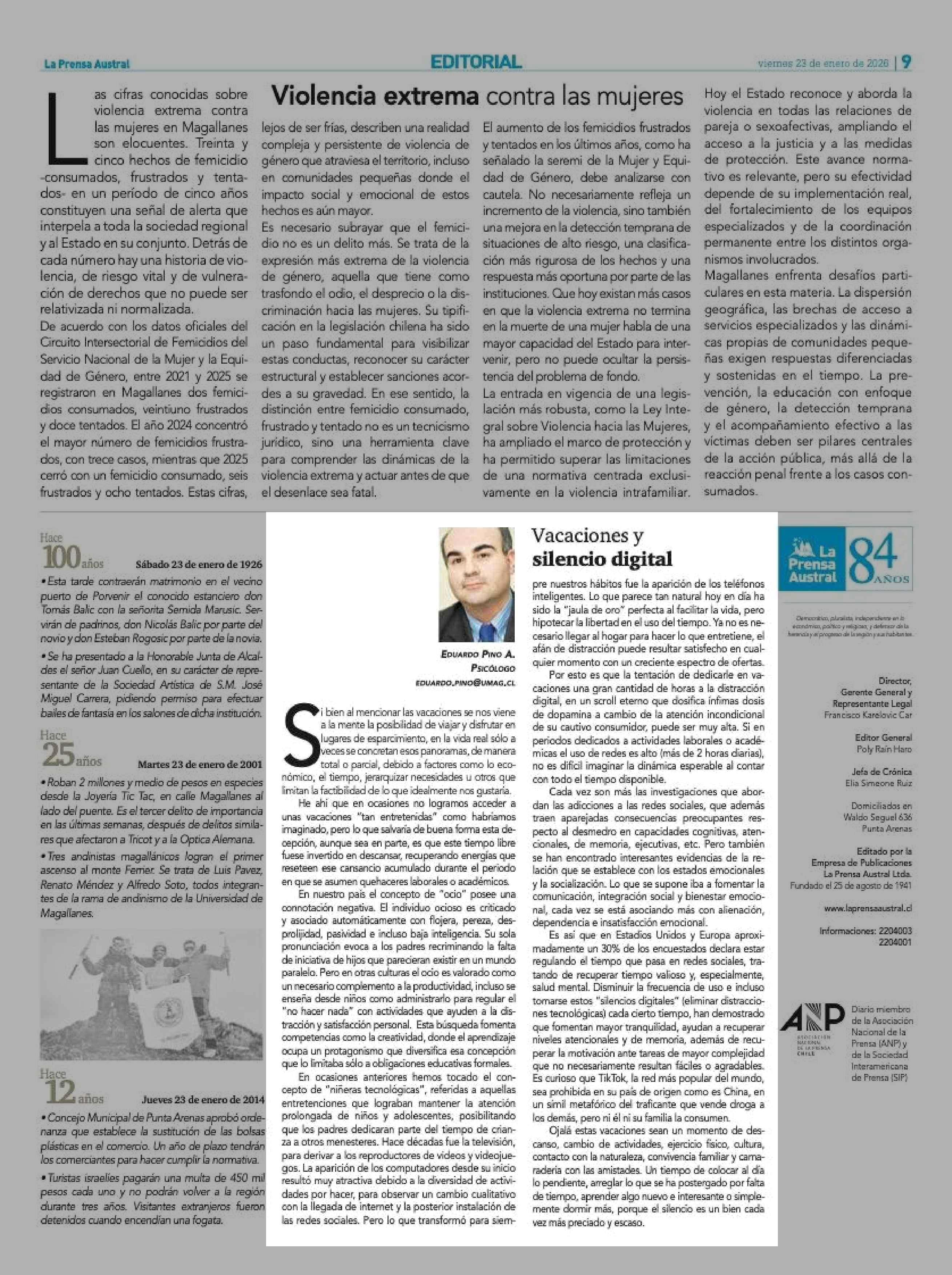 Cartas: Vacaciones y silencio digital 23-01-2026 La Prensa Austral |