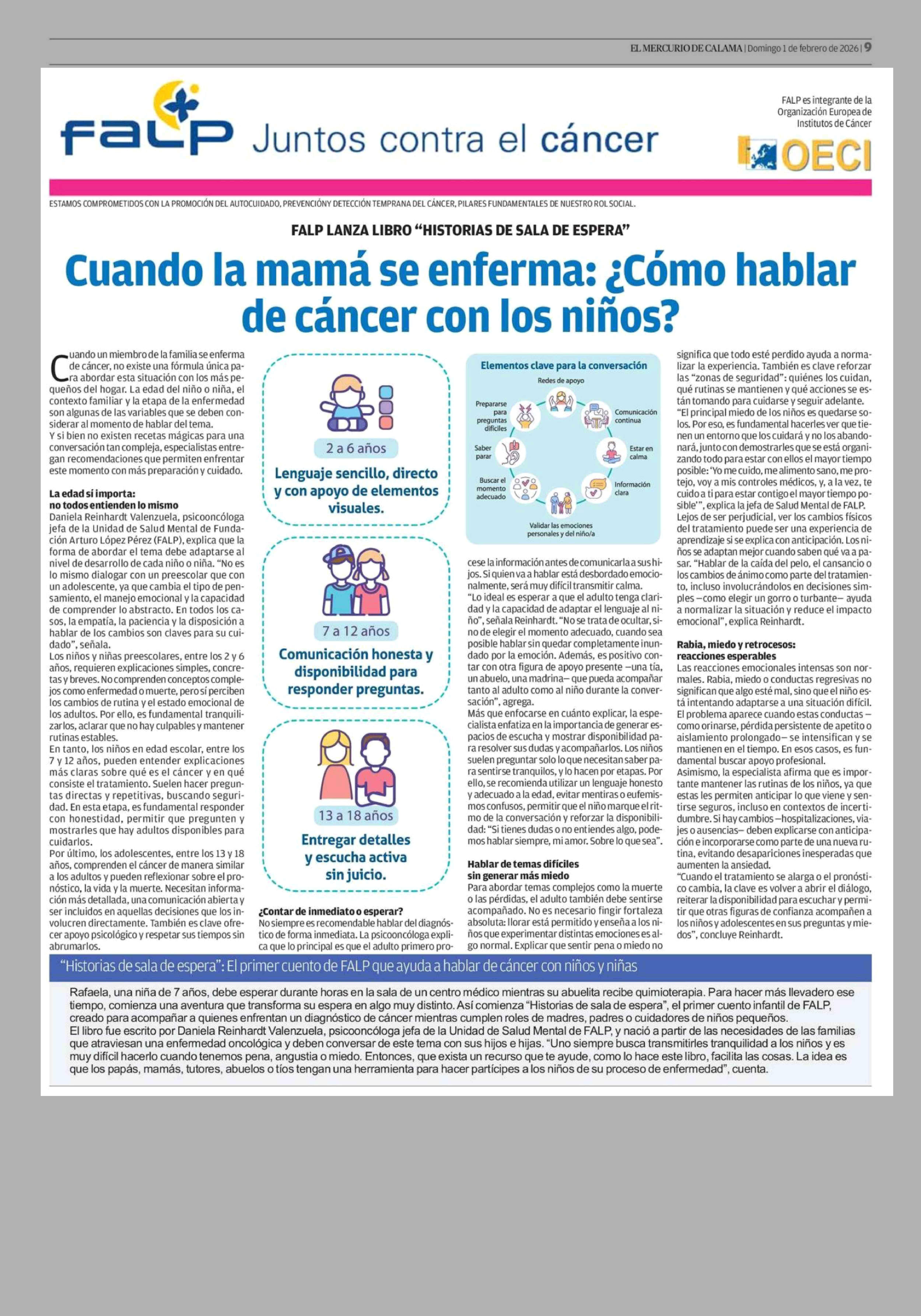 Cuando la mamá se enferma: ¿ Cómo hablar de cáncer con los niños? 01-02-2026 El Mercurio de Calama |