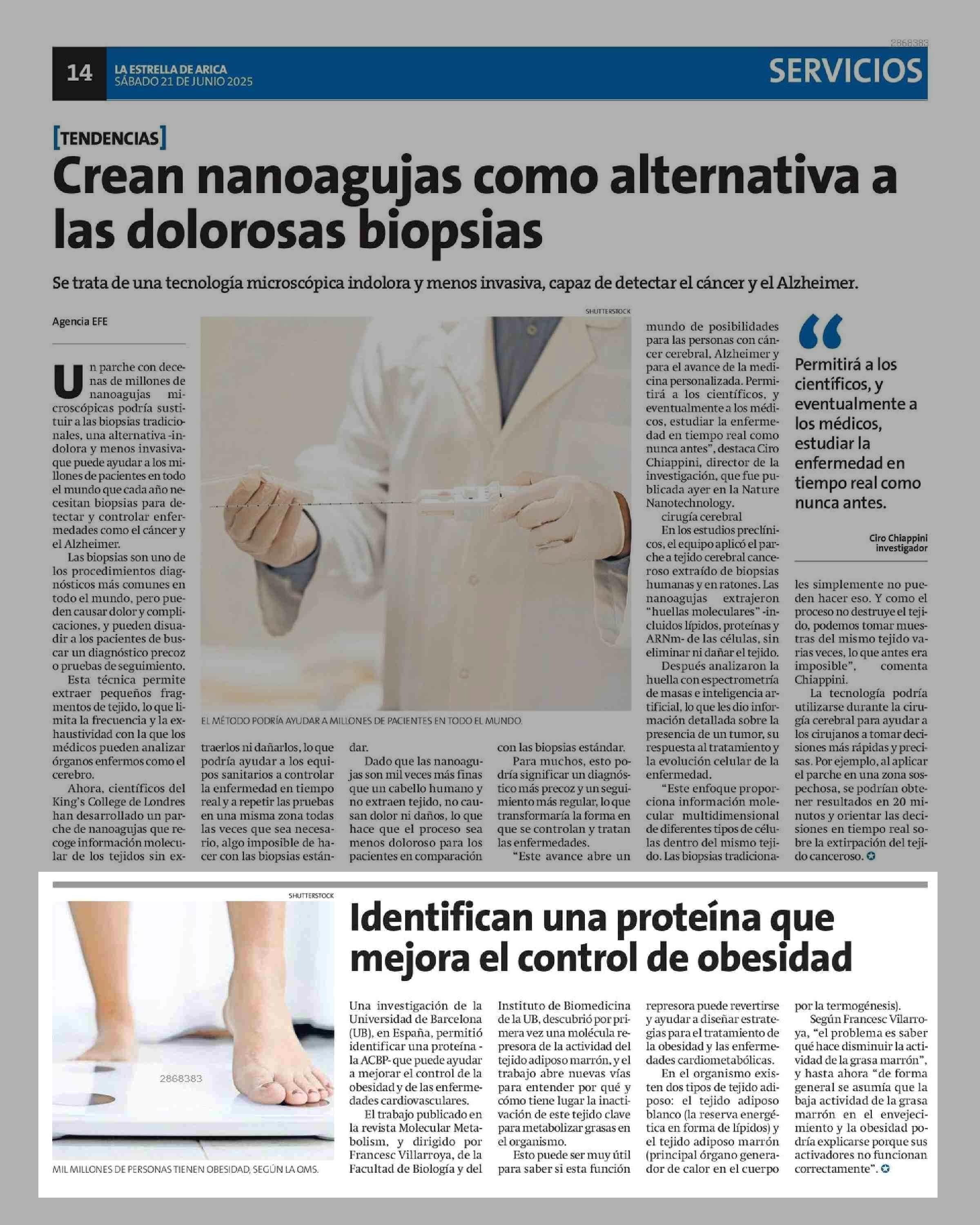 Identifican una proteína que mejora el control de obesidad 21-06-2025 La Estrella de Arica |