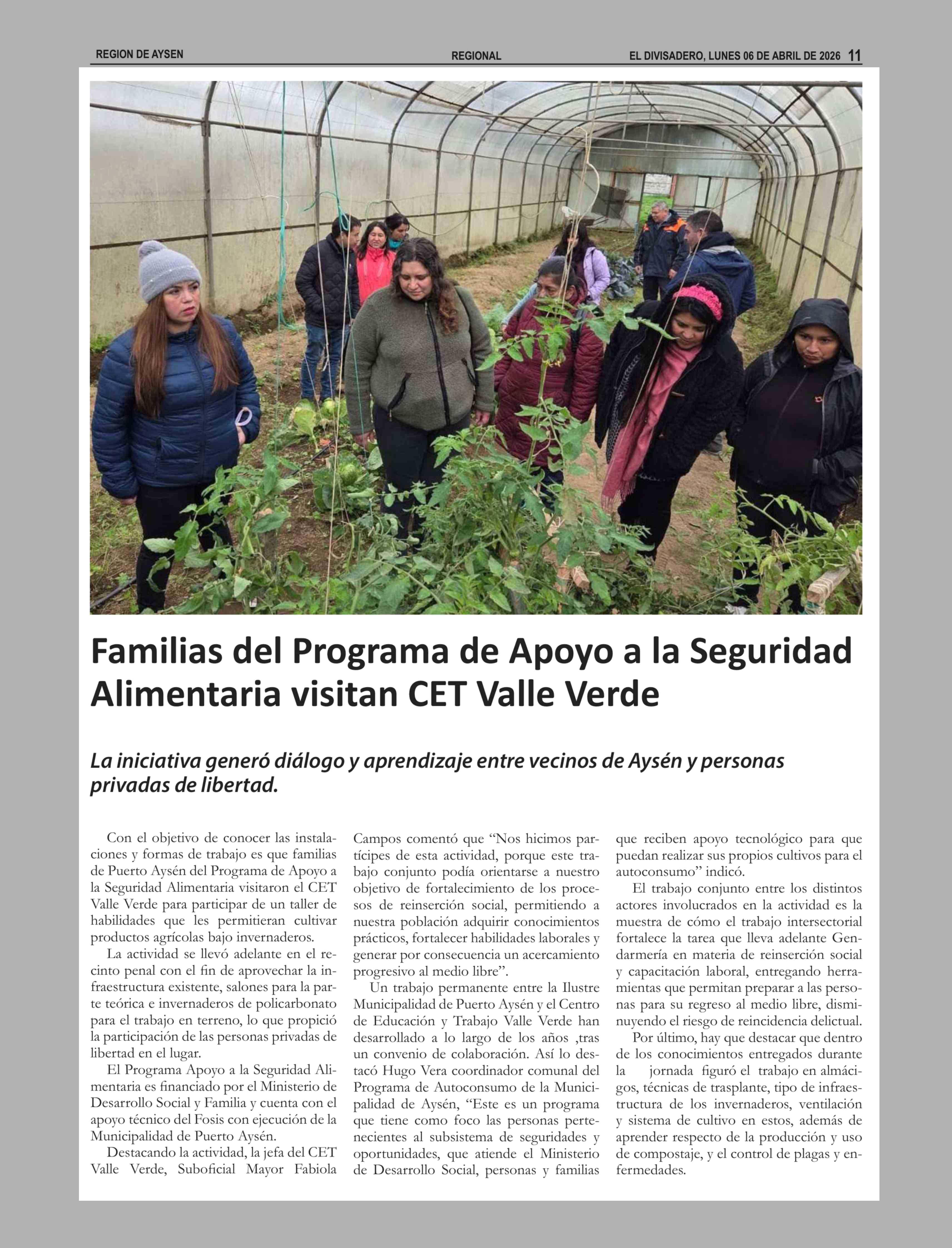 Familias del Programa de Apoyo a la Seguridad Alimentaria visitan CET Valle Verde 06-04-2026 El Divisadero |