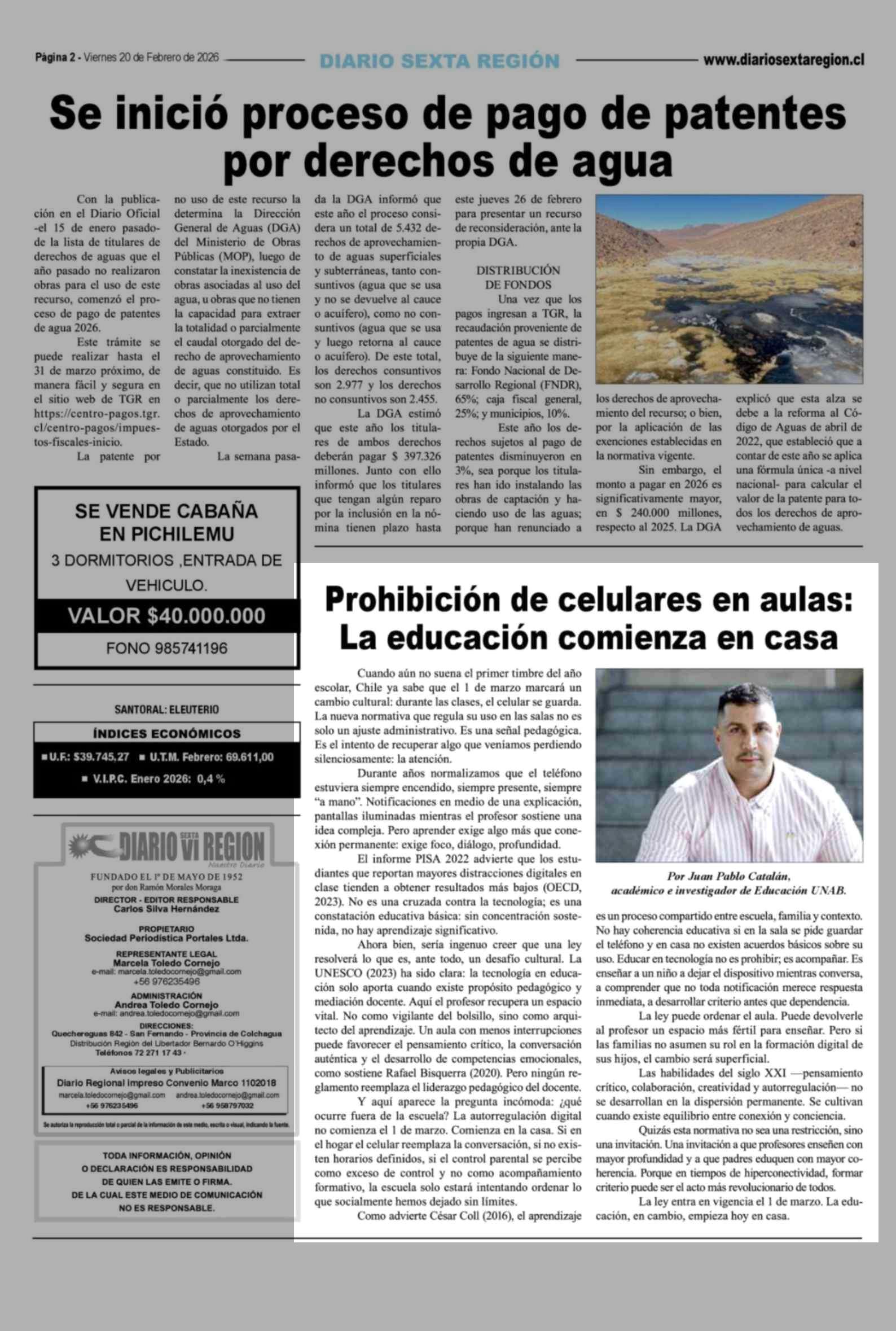 Prohibición de celulares en aulas: La educación comienza en casa 20-02-2026 Diario VI Región |