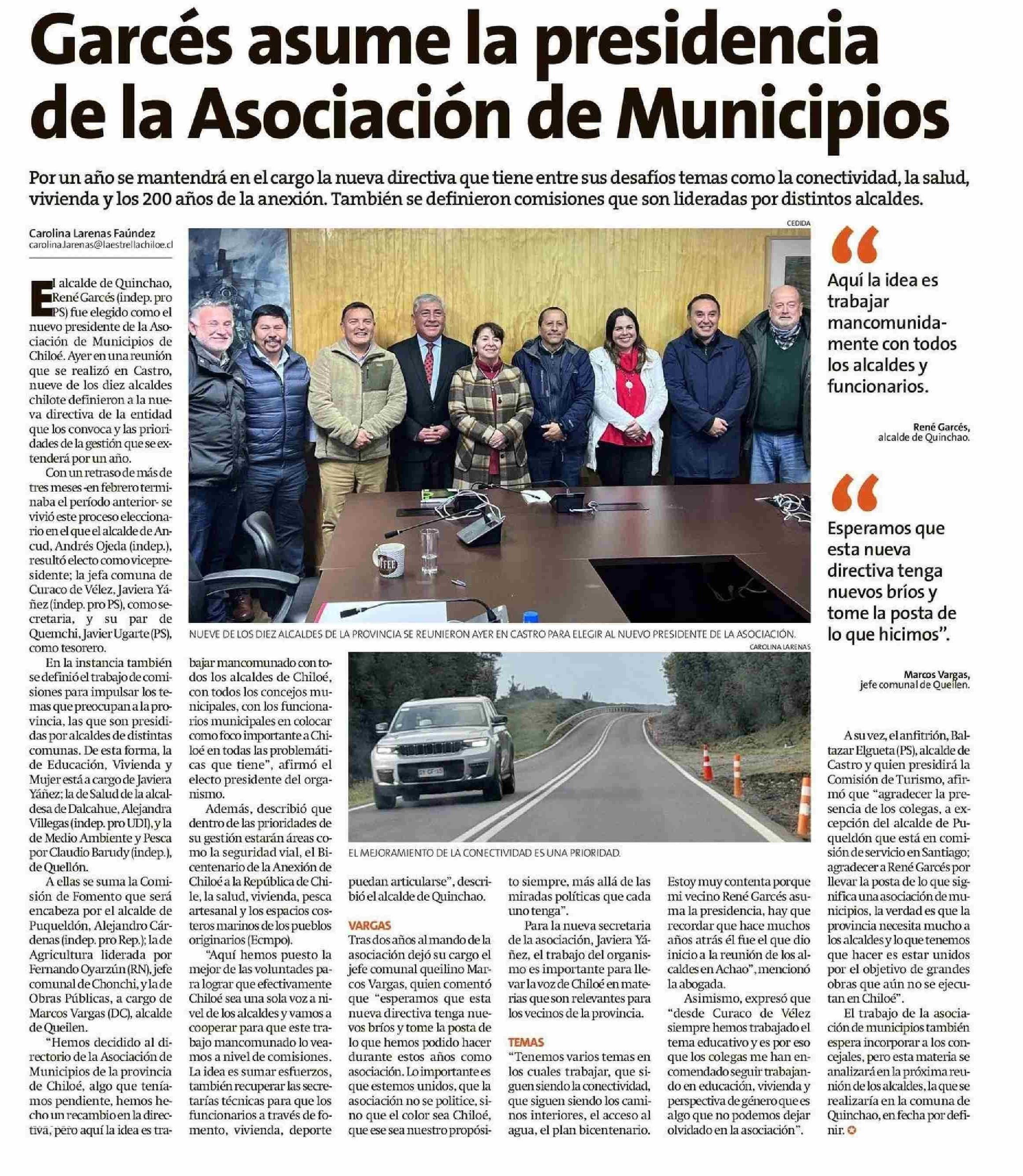 Garcés asume la presidencia de la Asociación de Municipios 03-06-2025 La Estrella de Chiloé |