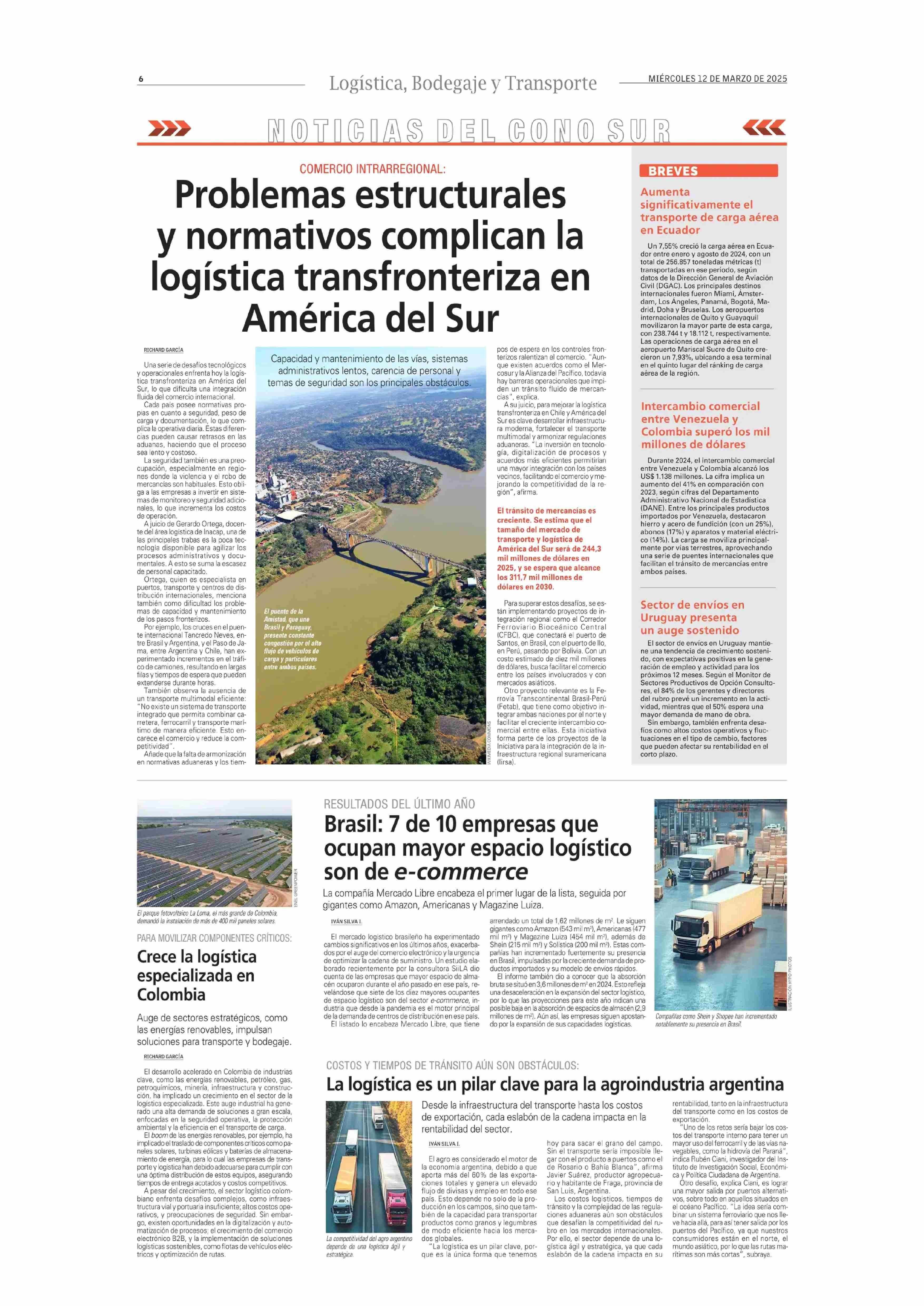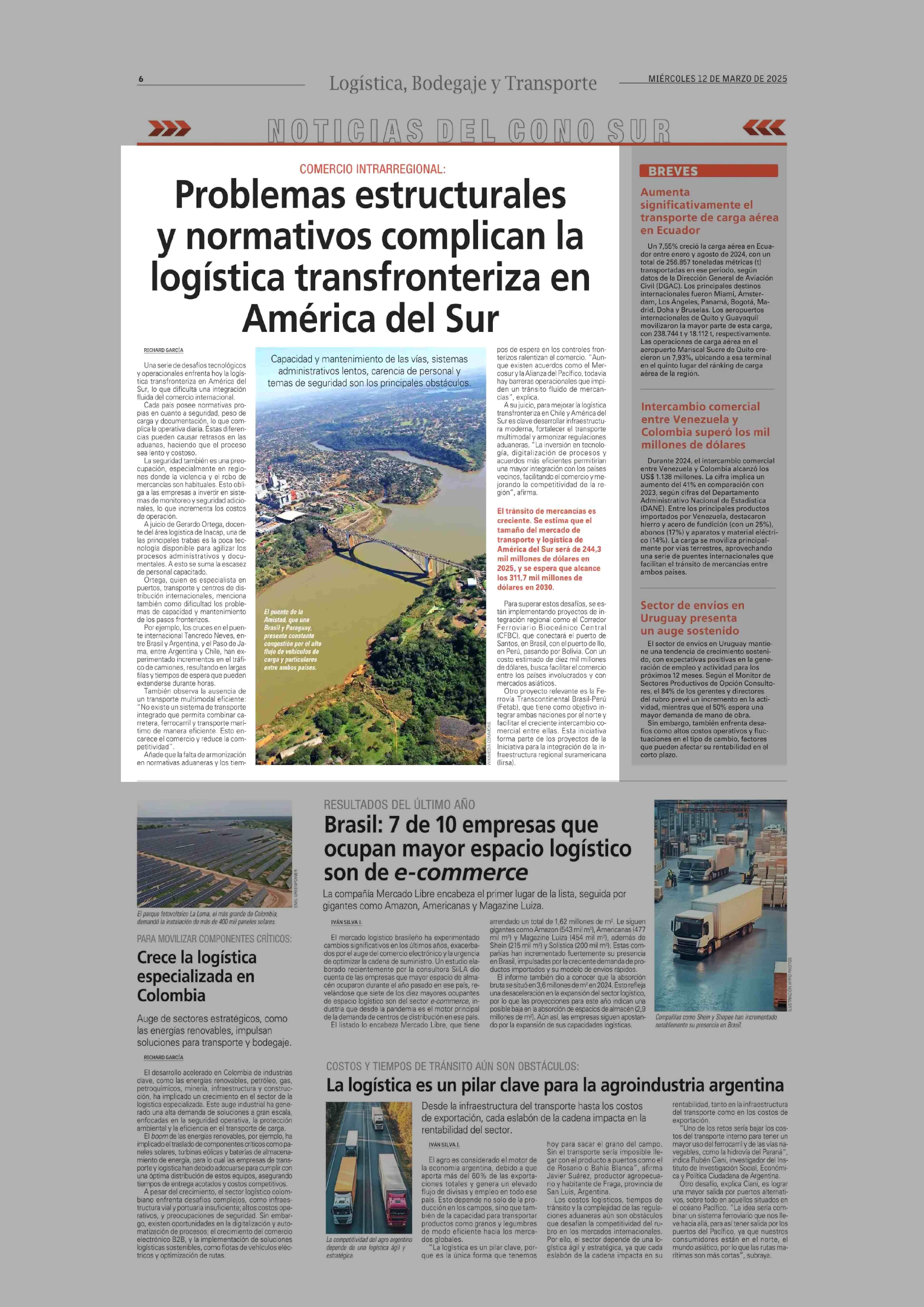 Problemas estructurales y normativos complican la logística transfronteriza en América del Sur 12-03-2025 El Mercurio |