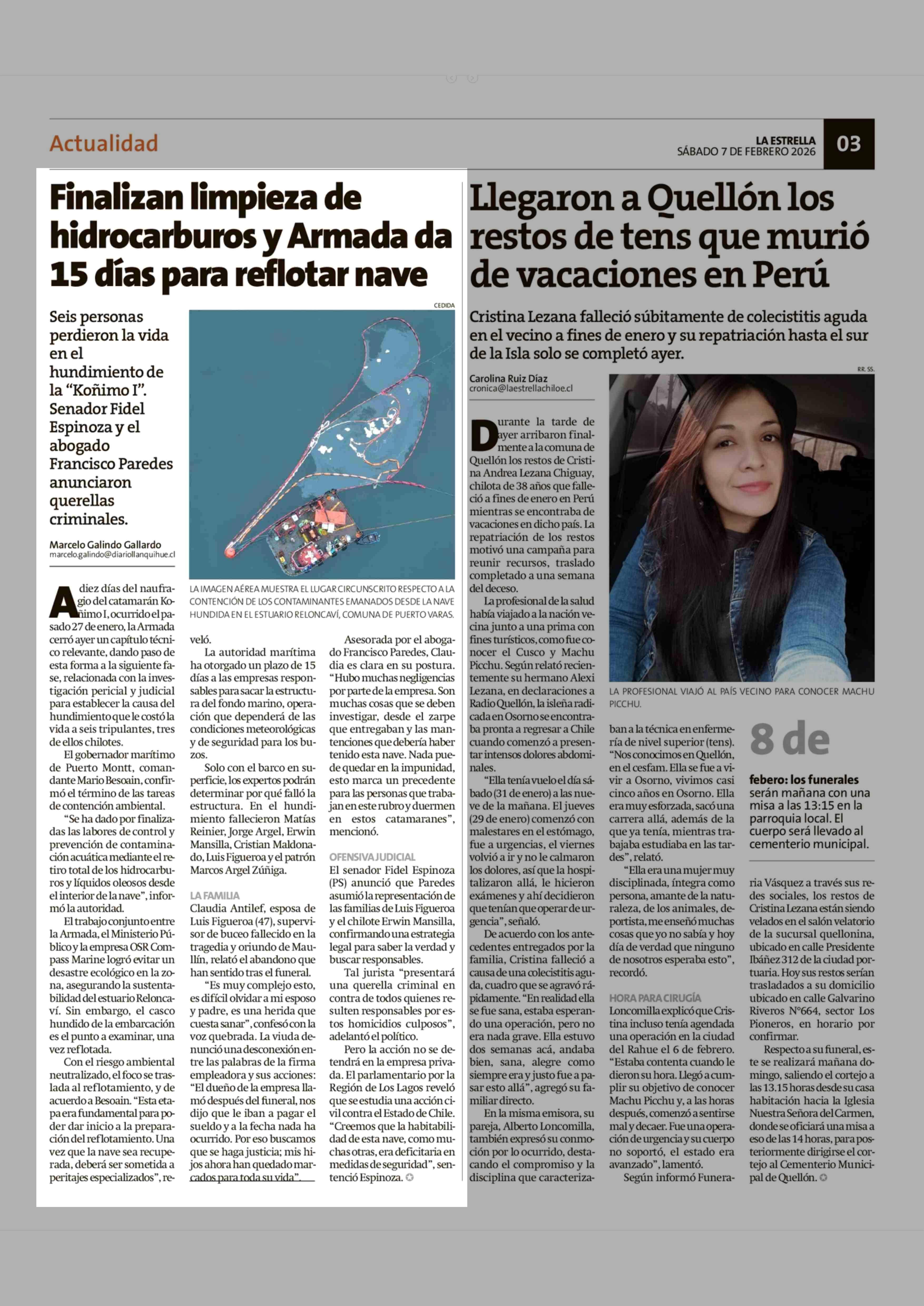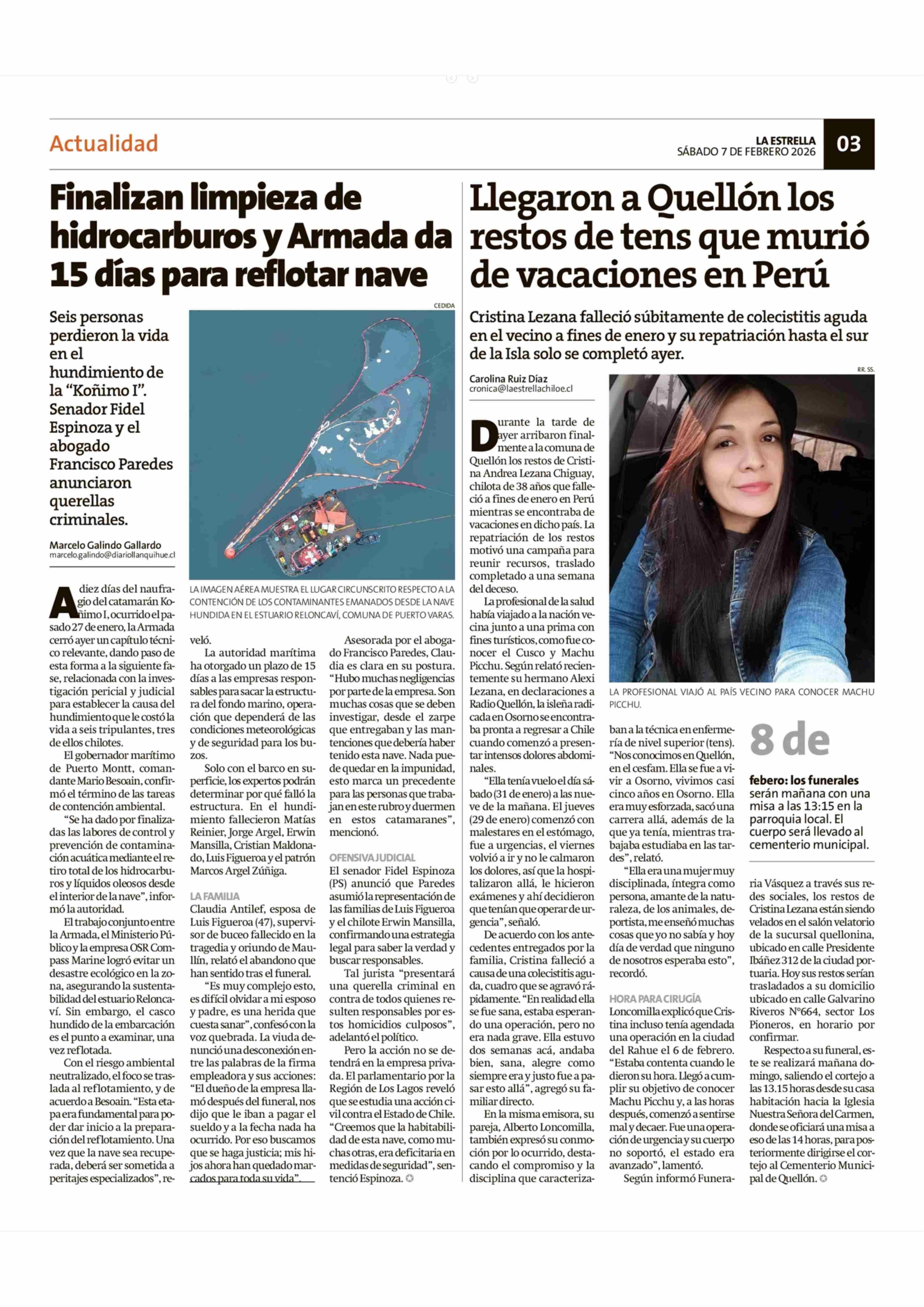 Finalizan limpieza de hidrocarburos y Armada da 15 días para reflotar nave 07-02-2026 La Estrella de Chiloé |
