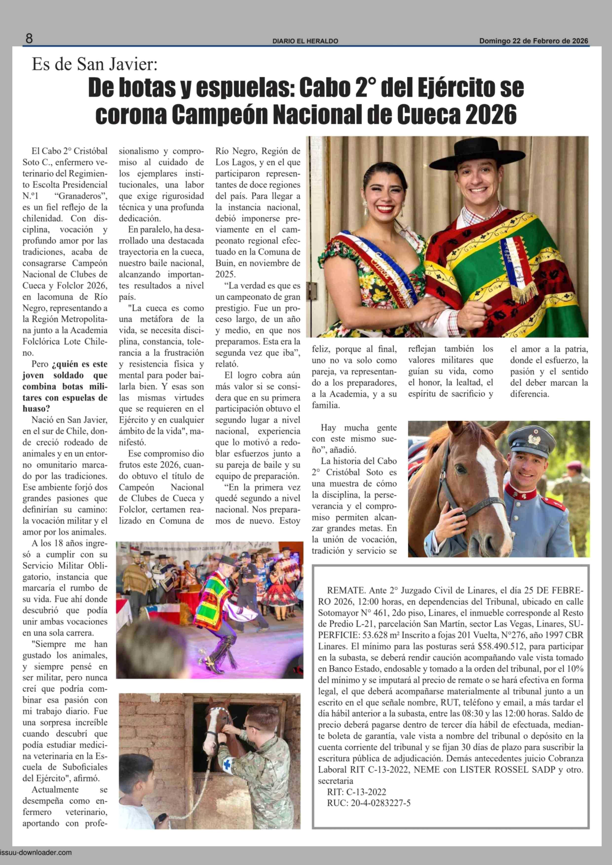 Título: De botas y espuelas: Cabo 2º del Ejército se corona Campeón Nacional de Cueca 2026