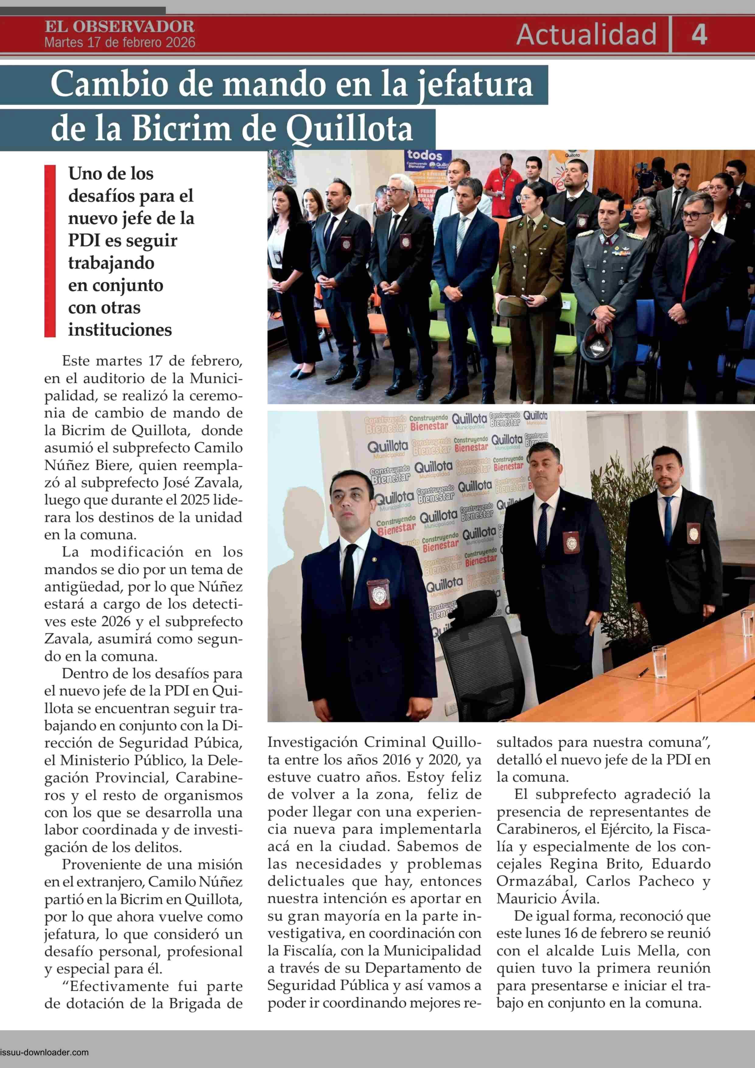 Cambio de mando en la jefatura de la Bicrim de Quillota 17-02-2026 El Observador Vespertino |