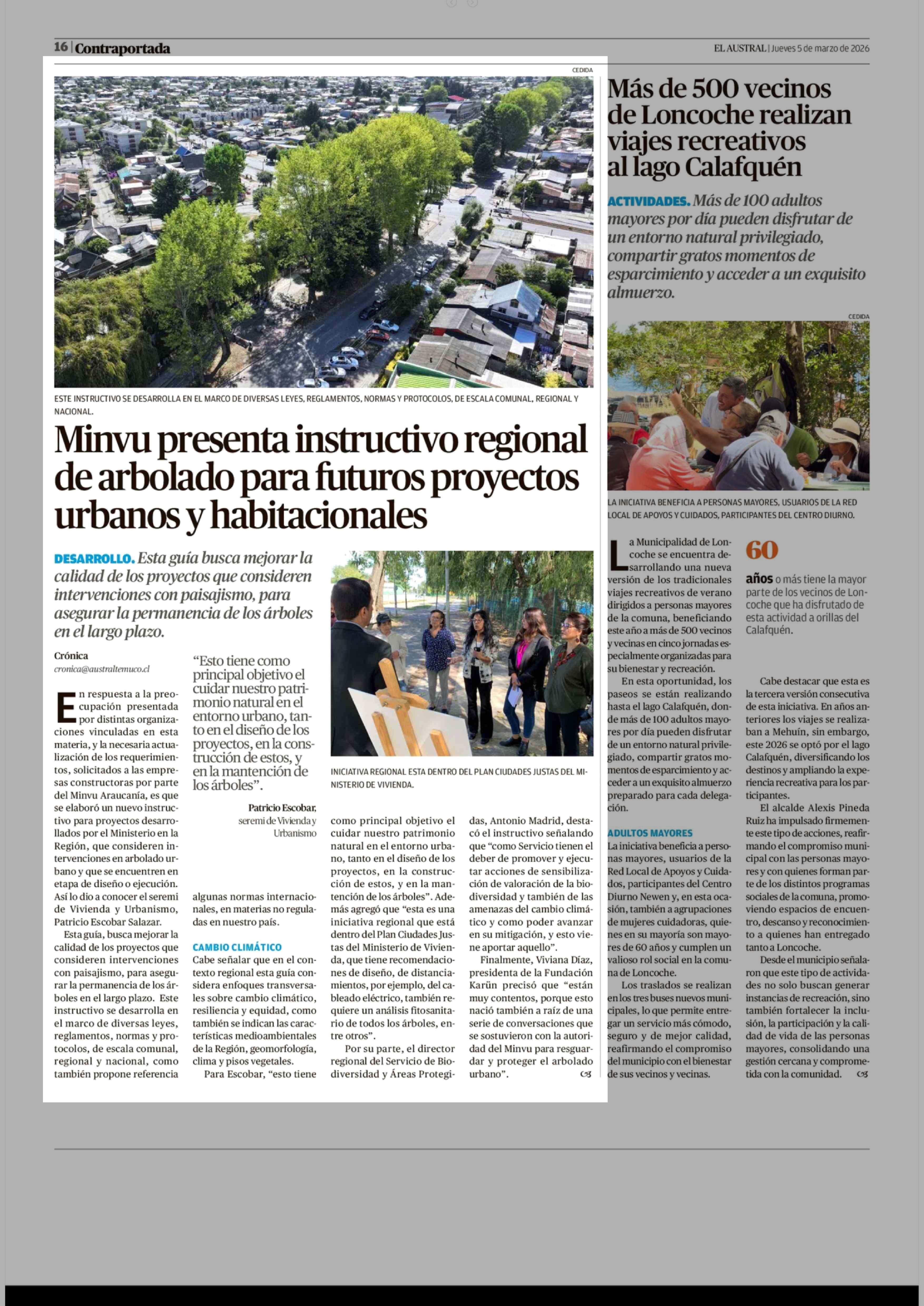 Minvu presenta instructivo regional de arbolado para futuros proyectos urbanos y habitacionales 05-03-2026 El Austral de la Araucanía |