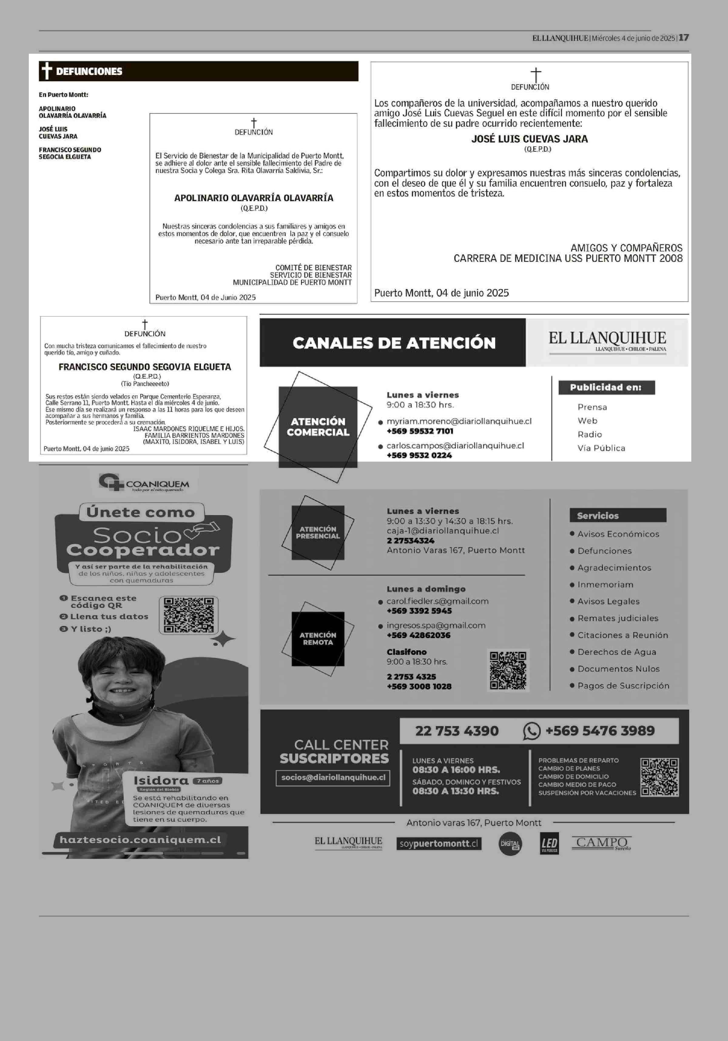 DEFUNCIÓN 04-06-2025 El Llanquihue |