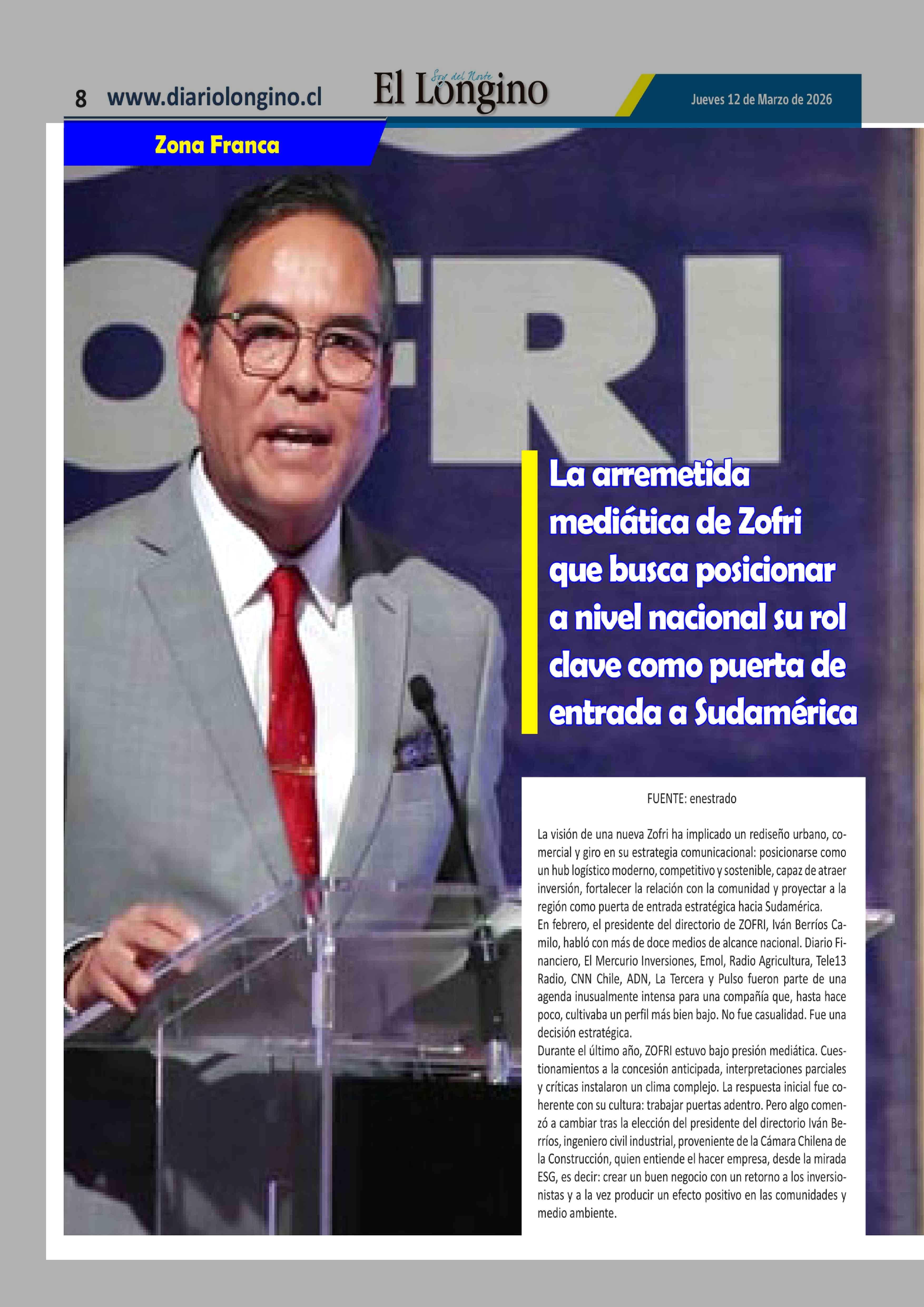 La arremetida mediática de Zofri que busca posicionar a nivel nacional su rol clave como puerta de entrada a Sudamérica 12-03-2026 El Longino |