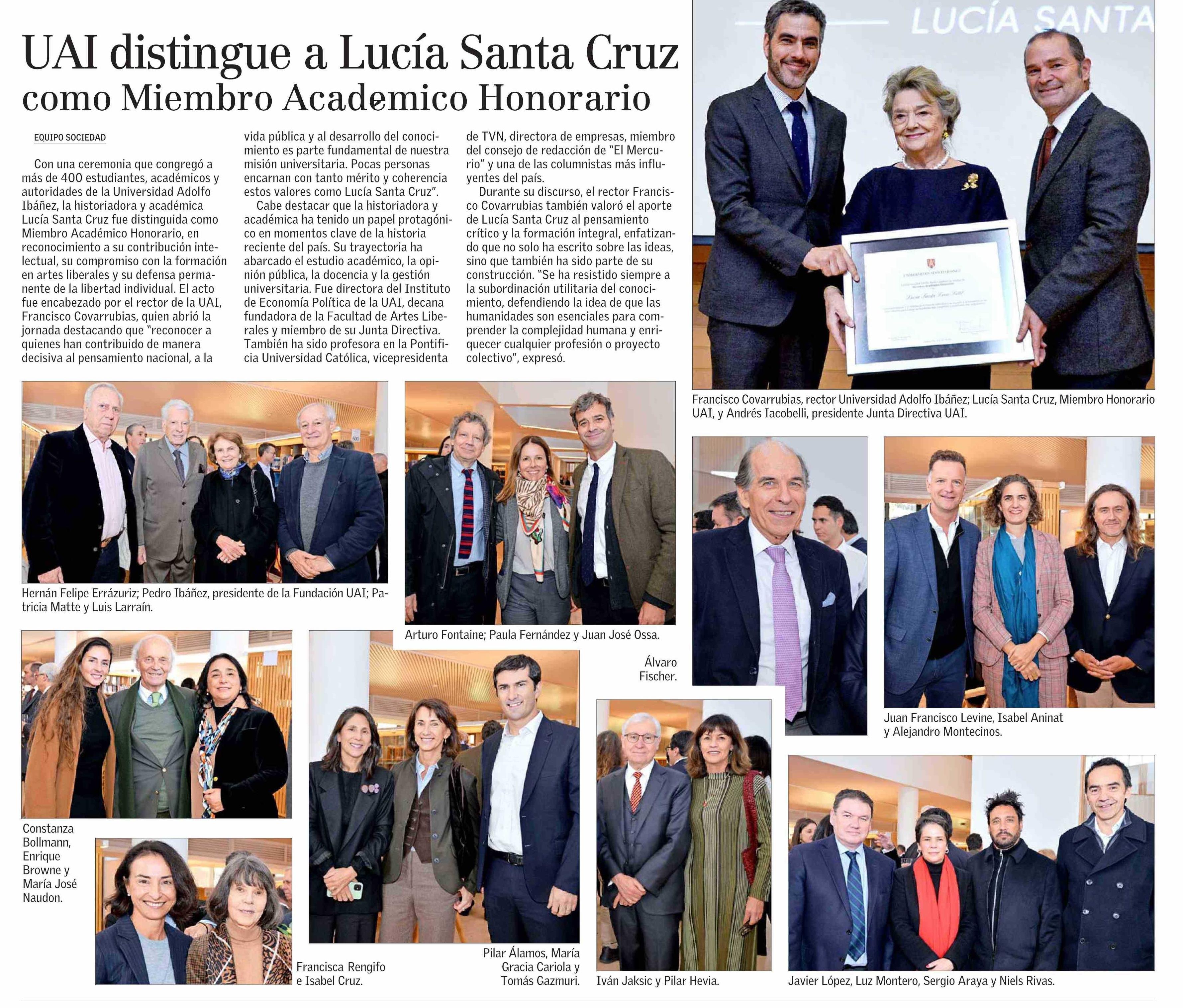 UAI distingue a Lucía Santa Cruz como Miembro Academico Honorario 03-06-2025 El Mercurio |