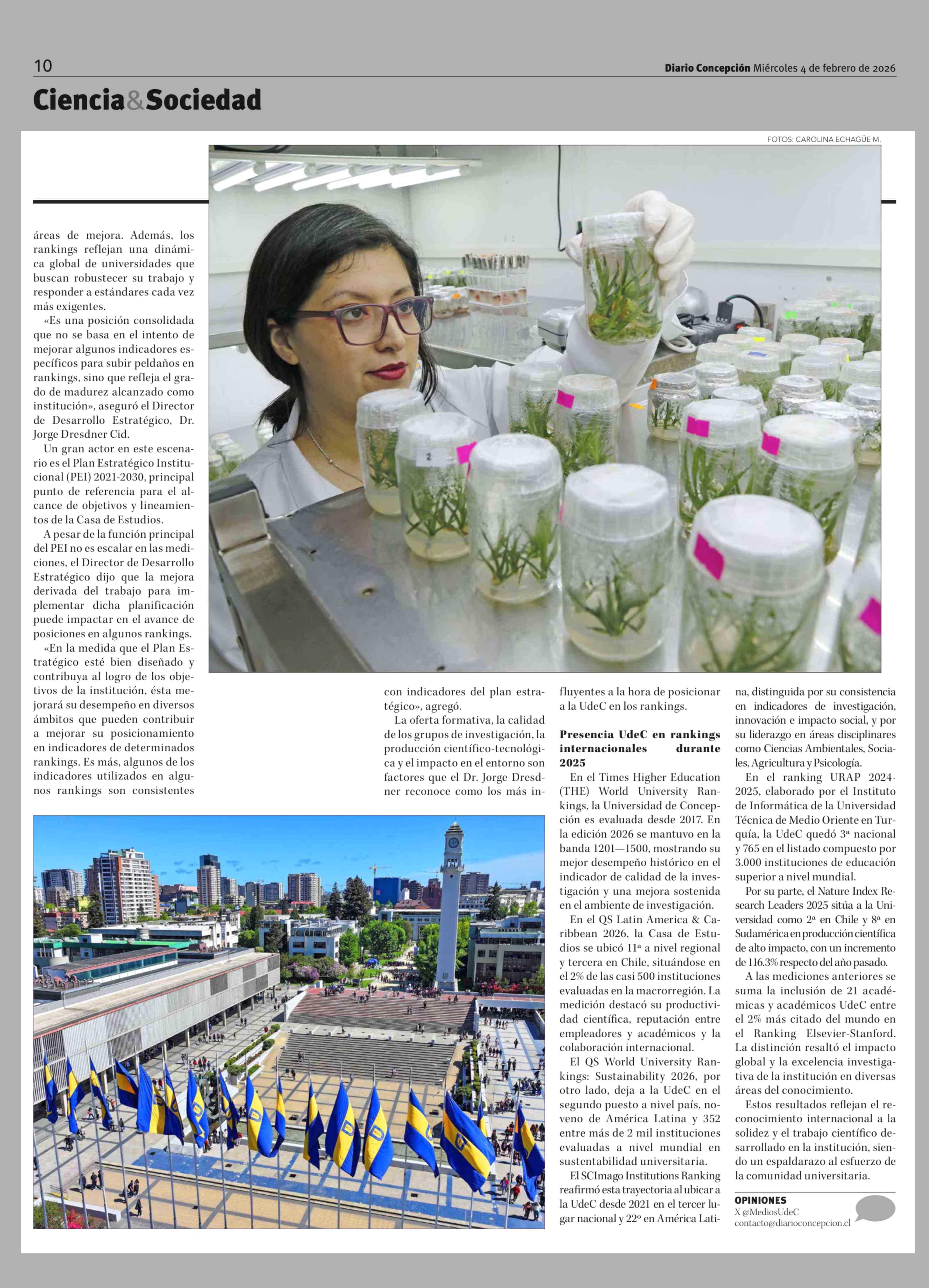 Universidad de Concepción reafirma su liderazgo nacional y global en los principales rankings internacionales 04-02-2026 Diario Concepción |