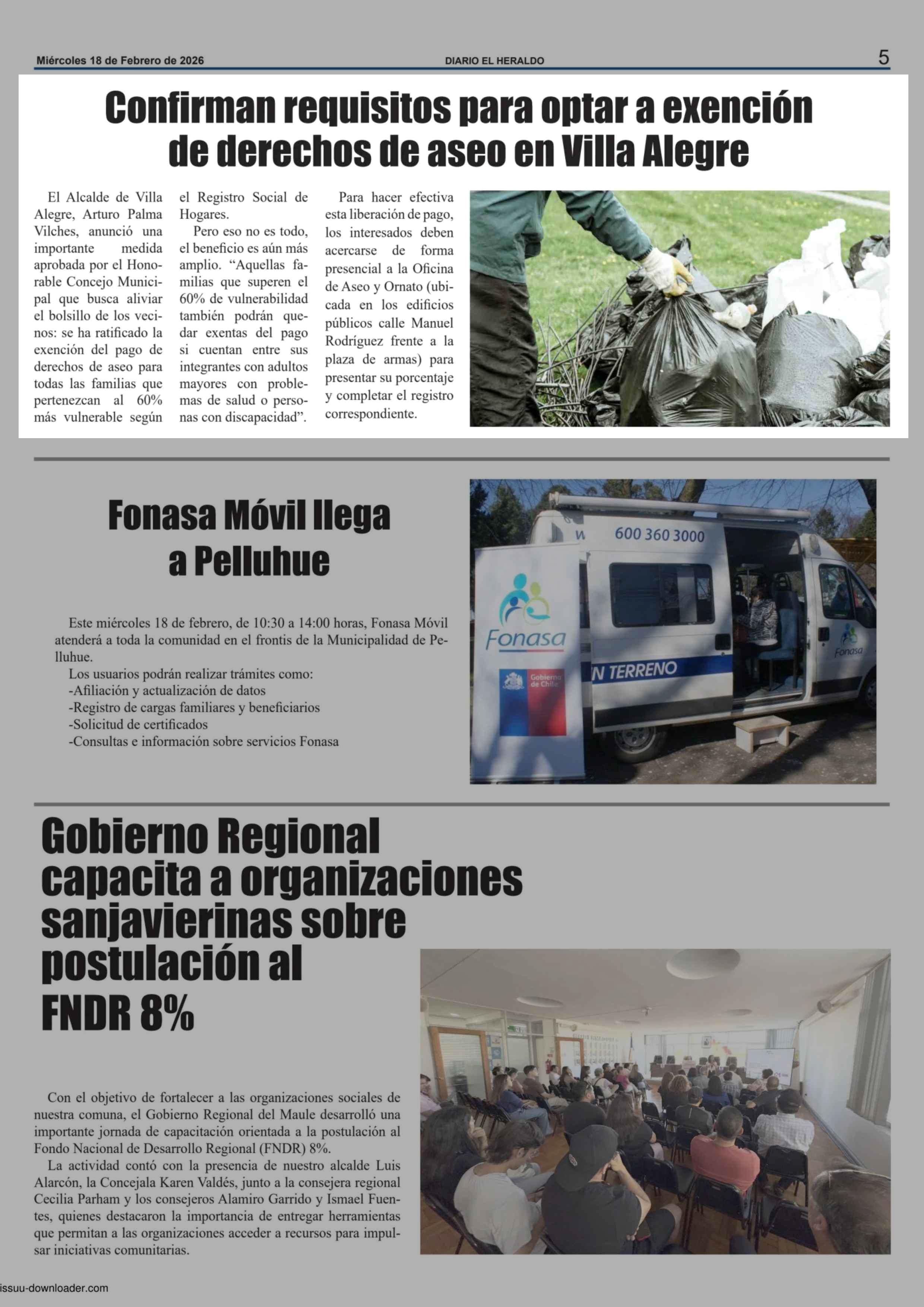 Confirman requisitos para optar a exención de derechos de aseo en Villa Alegre 18-02-2026 El Heraldo |