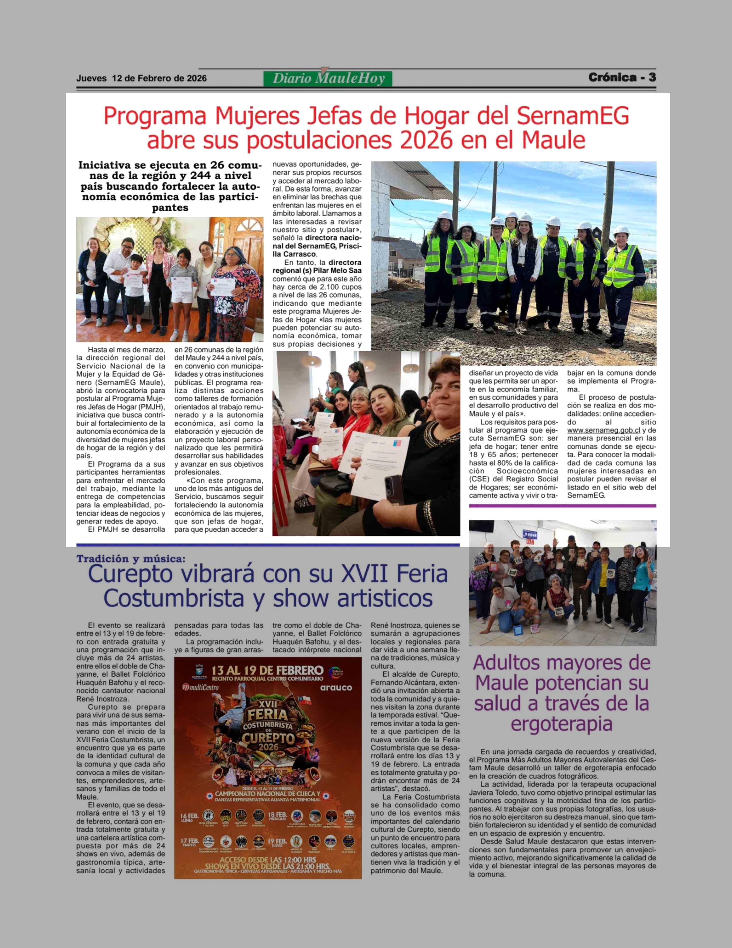Fecha: 12-02-2026 Sector: Noticia general Región: Región del Maule