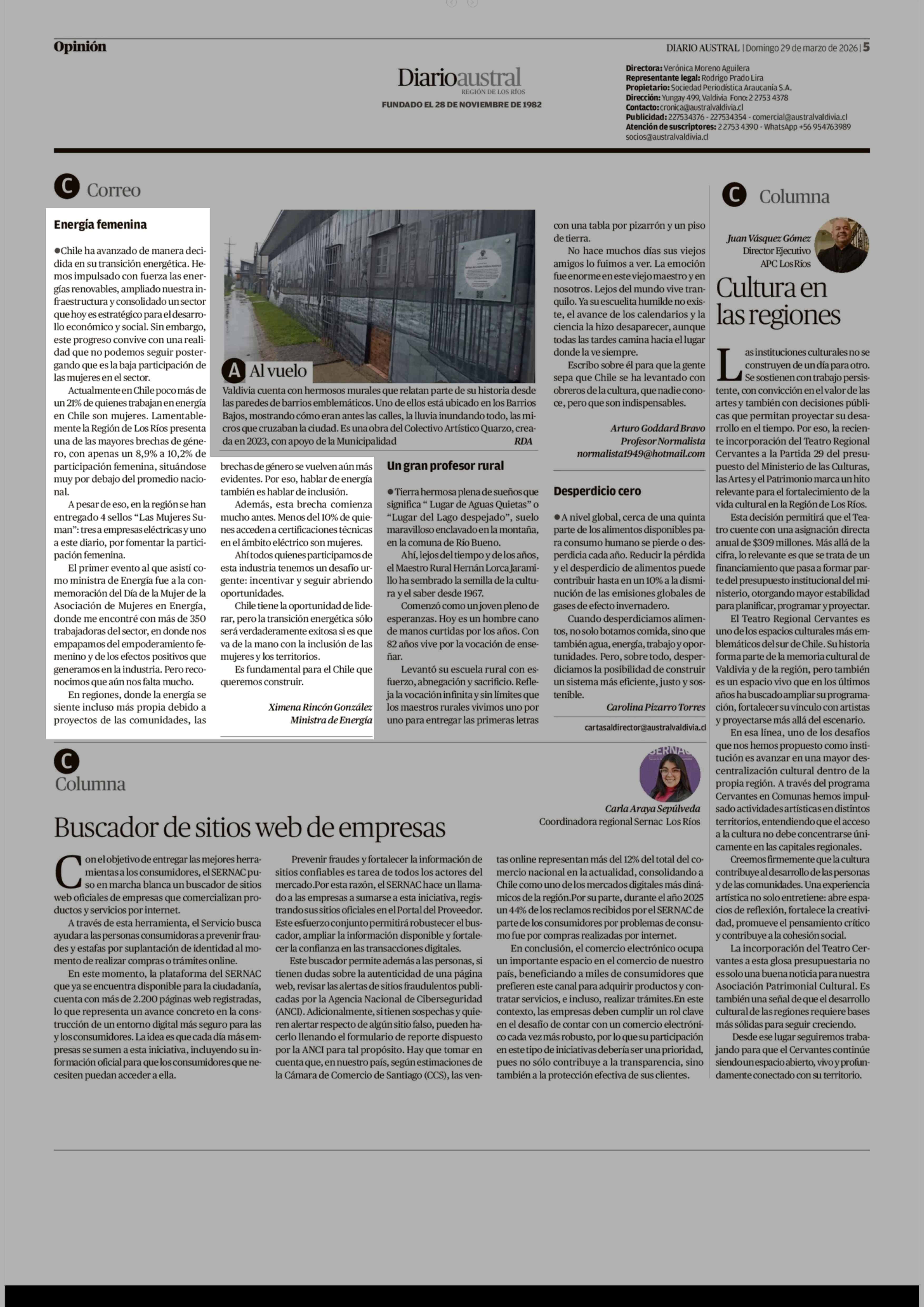 CARTAS: Energía femenina 29-03-2026 Diario Austral Región de Los Ríos |