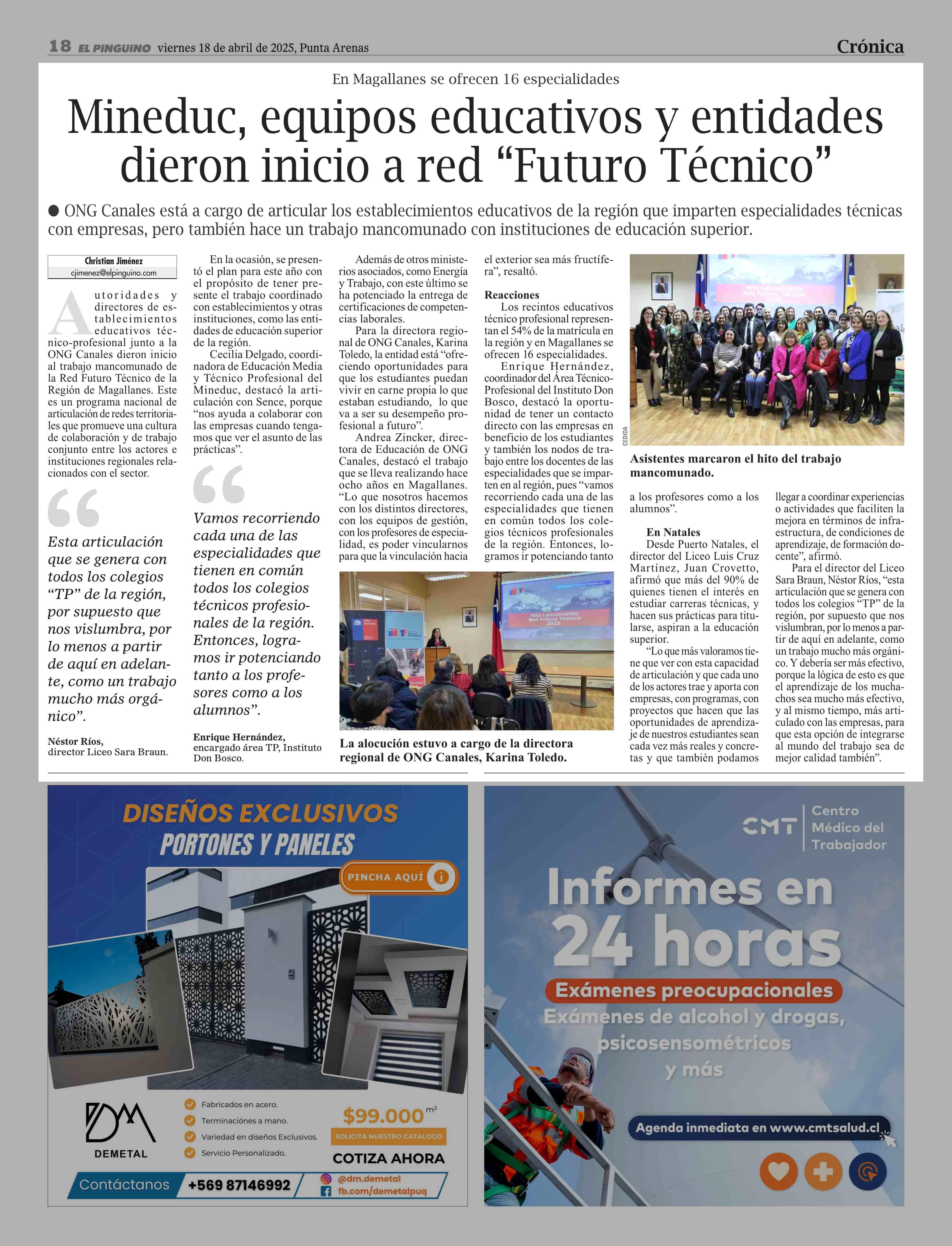 Mineduc, equipos educativos y entidades dieron inicio a red “Futuro Técnico” 18-04-2025 El Pingüino |