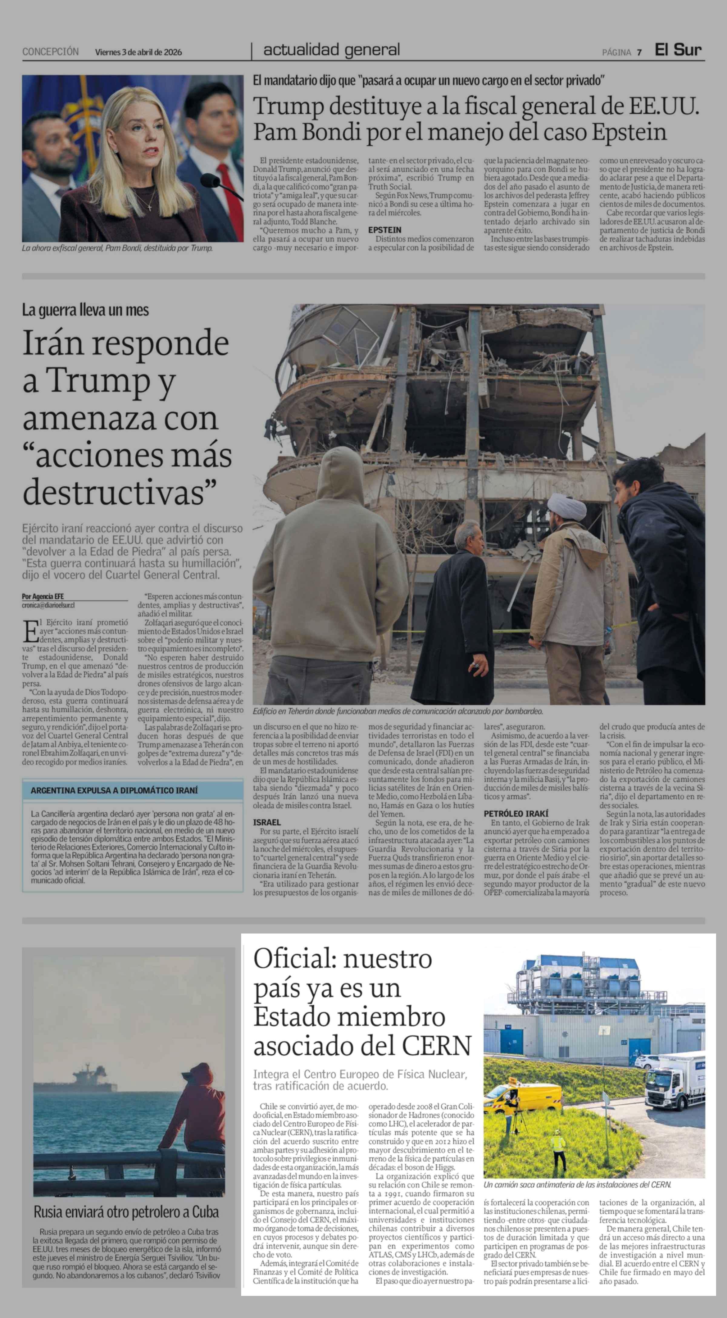 Oficial: nuestro país ya es un Estado miembro asociado del CERN 03-04-2026 El Sur |