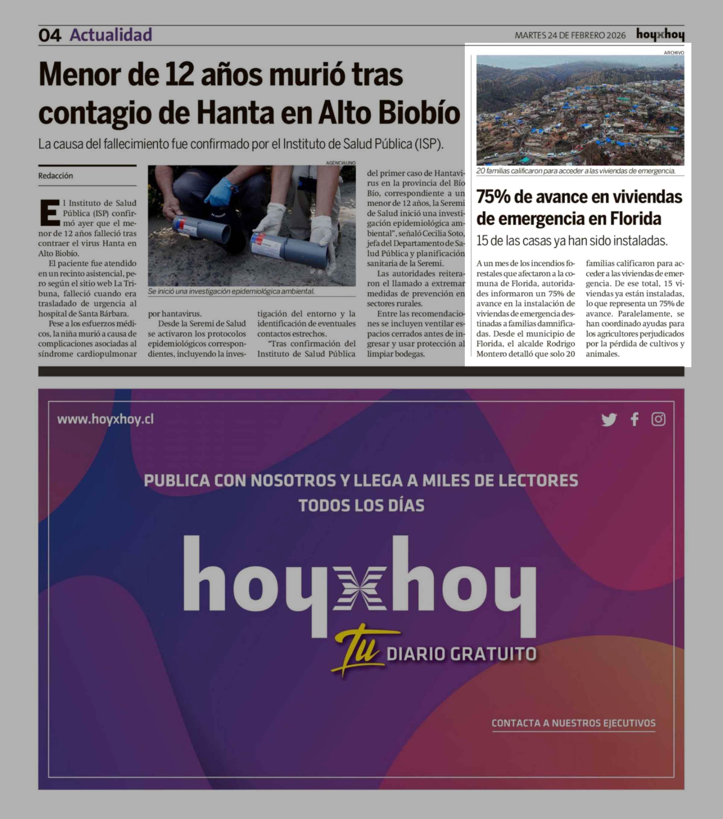 75% De avance en viviendas de emergencia en Florida 24-02-2026 Hoy x Hoy Concepción |