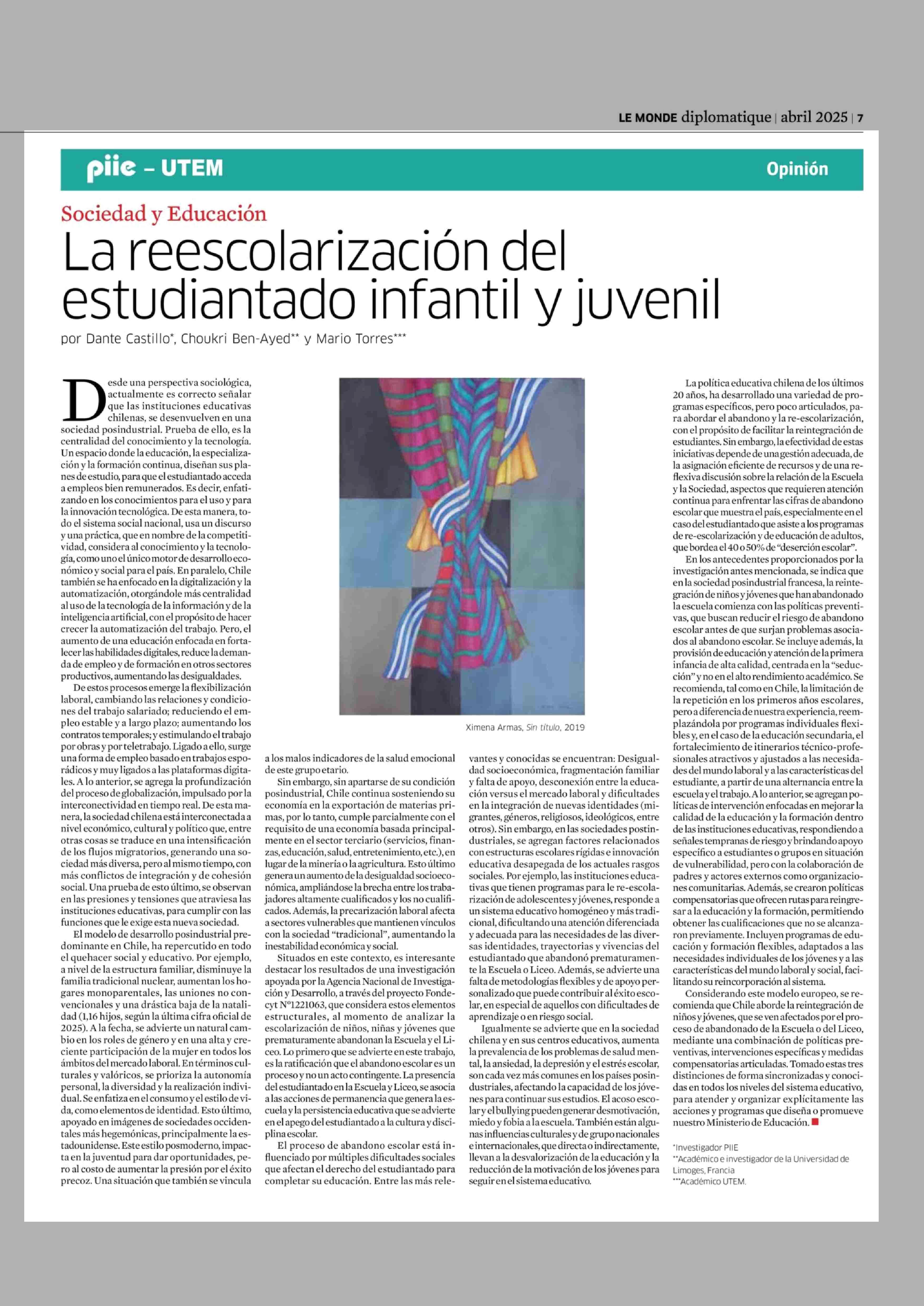 La reescolarización del estudiantado infantil y juvenil 07-04-2025 Le Monde Diplomatique |