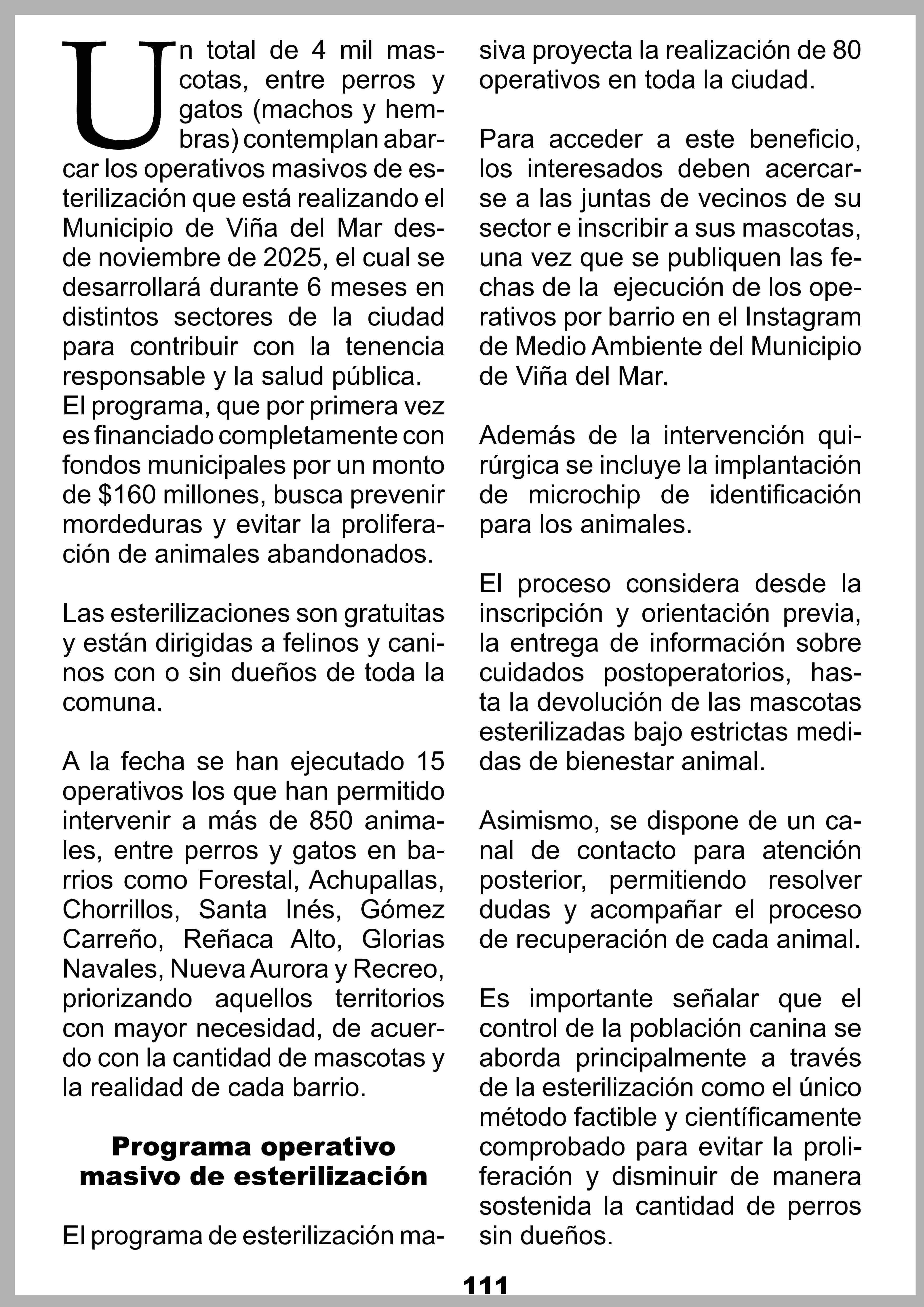 Título: Municipio de Viña del Mar avanza en operativos de esterilización masiva de mascotas para contribuir con la tenencia