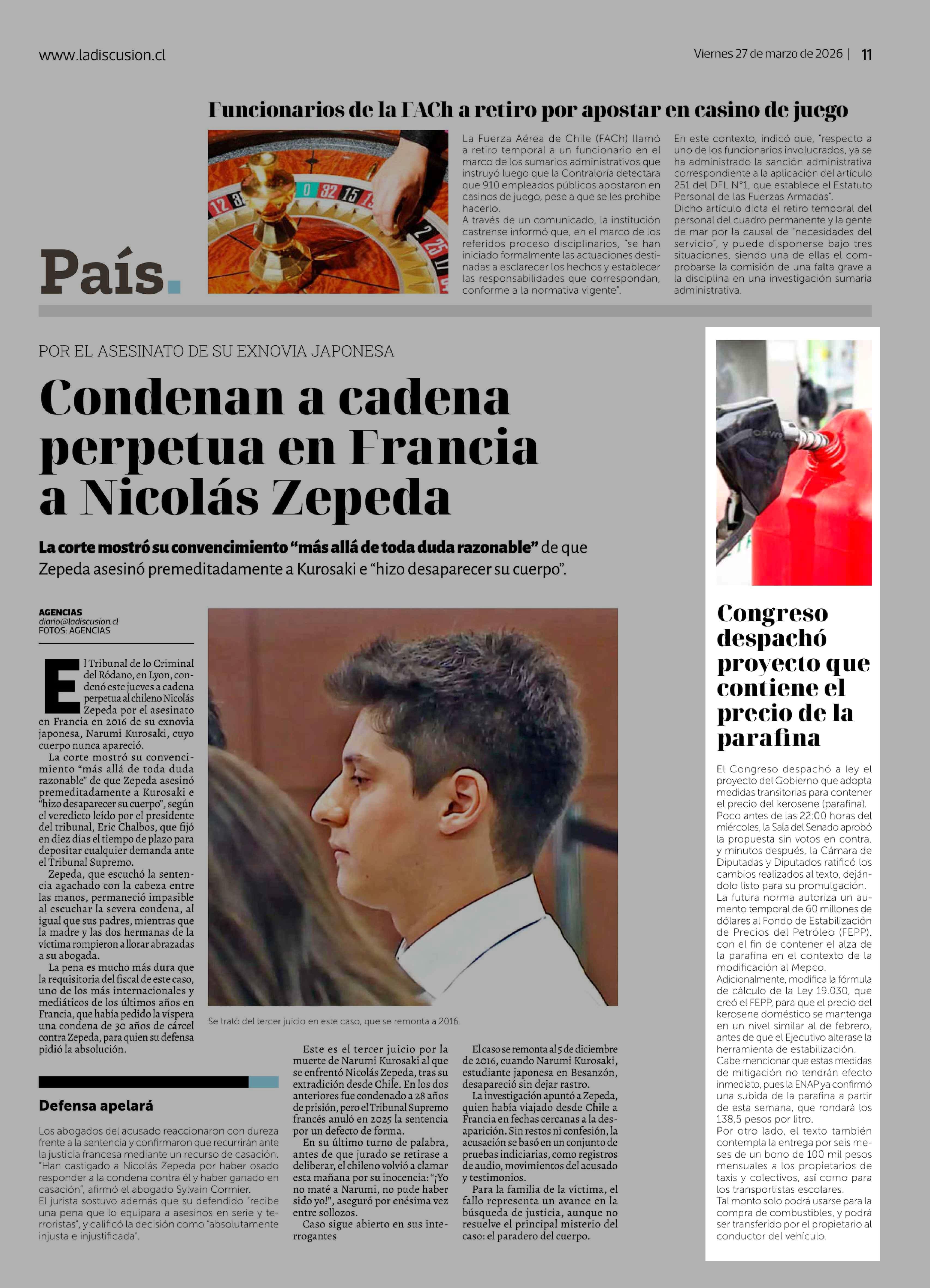 Congreso despachó proyecto que contiene el precio de la parafina 27-03-2026 La Discusión |