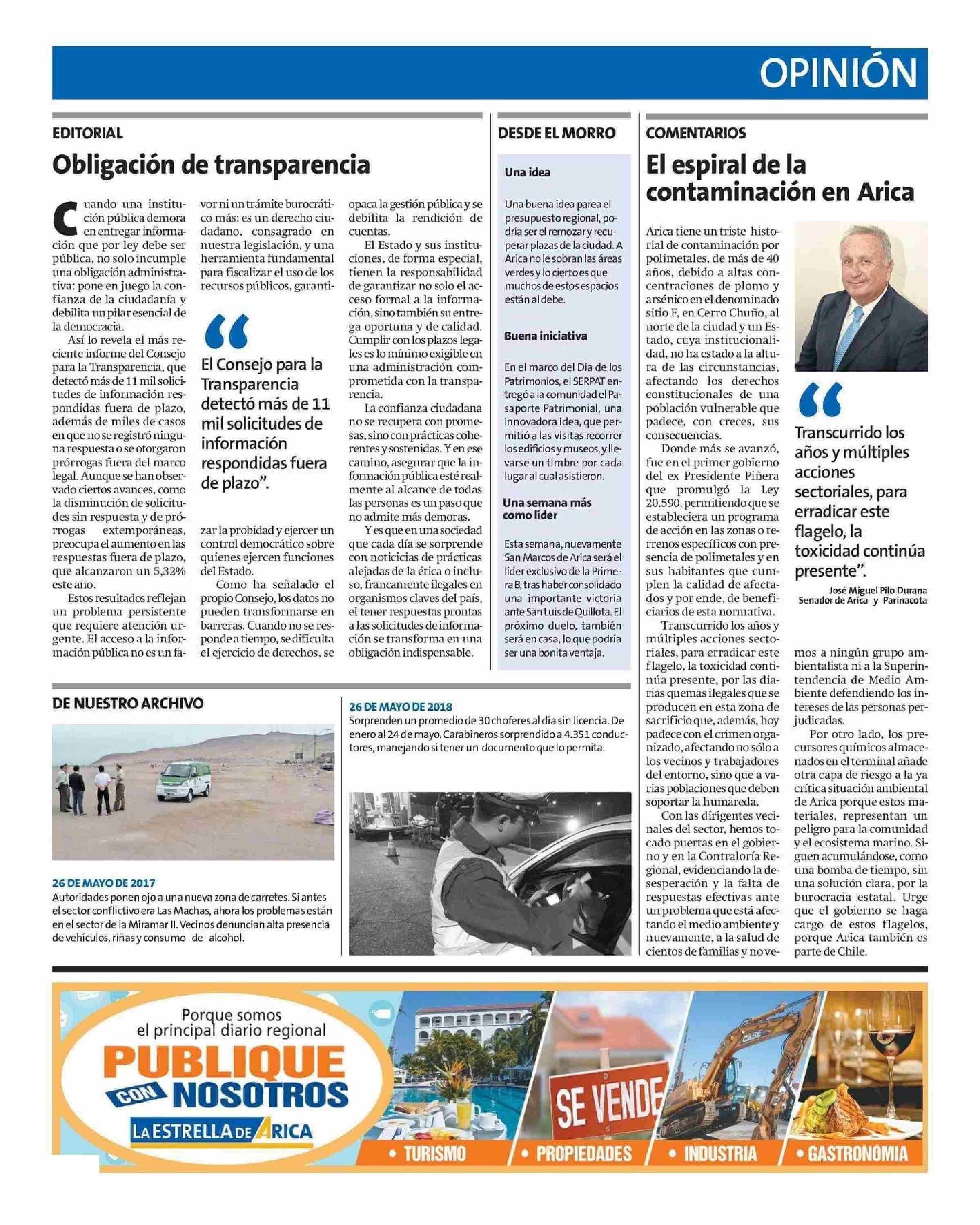 COLUMNAS DE OPINIÓN: El espiral de la contaminación en Arica 26-05-2025 La Estrella de Arica |