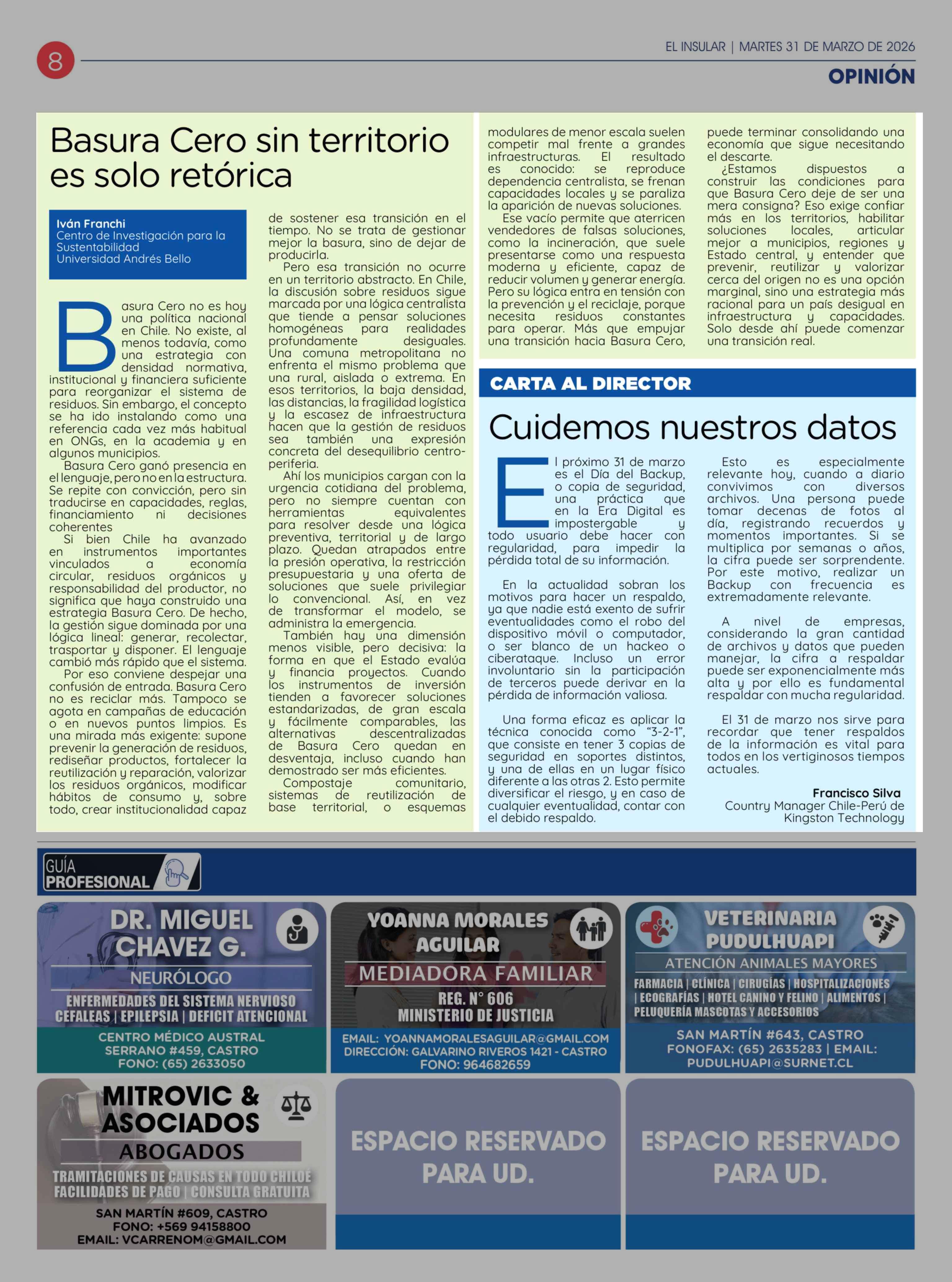 Fecha: 31-03-2026 Sector: Columnas de Opinión Región: Región de Los Lagos