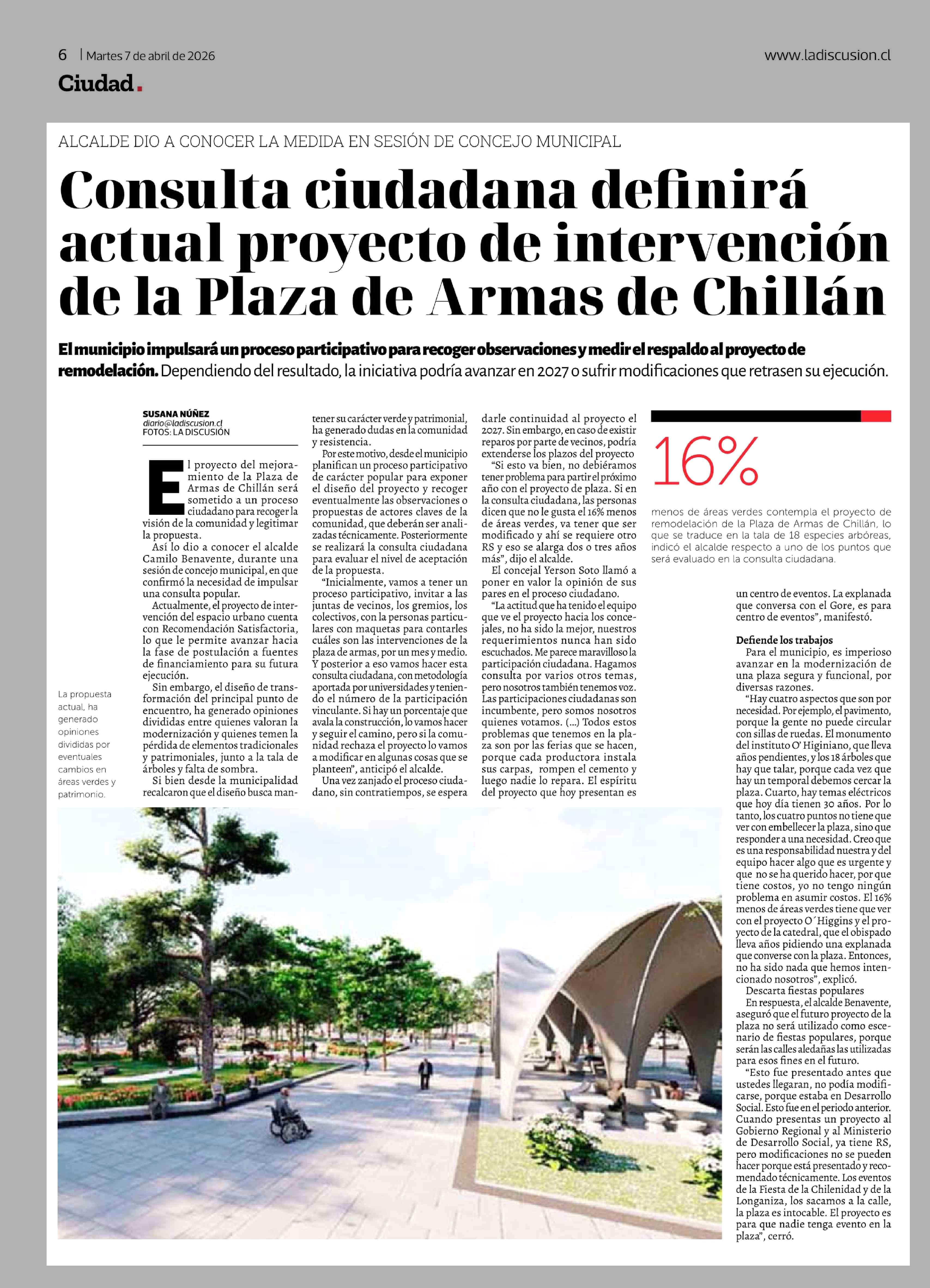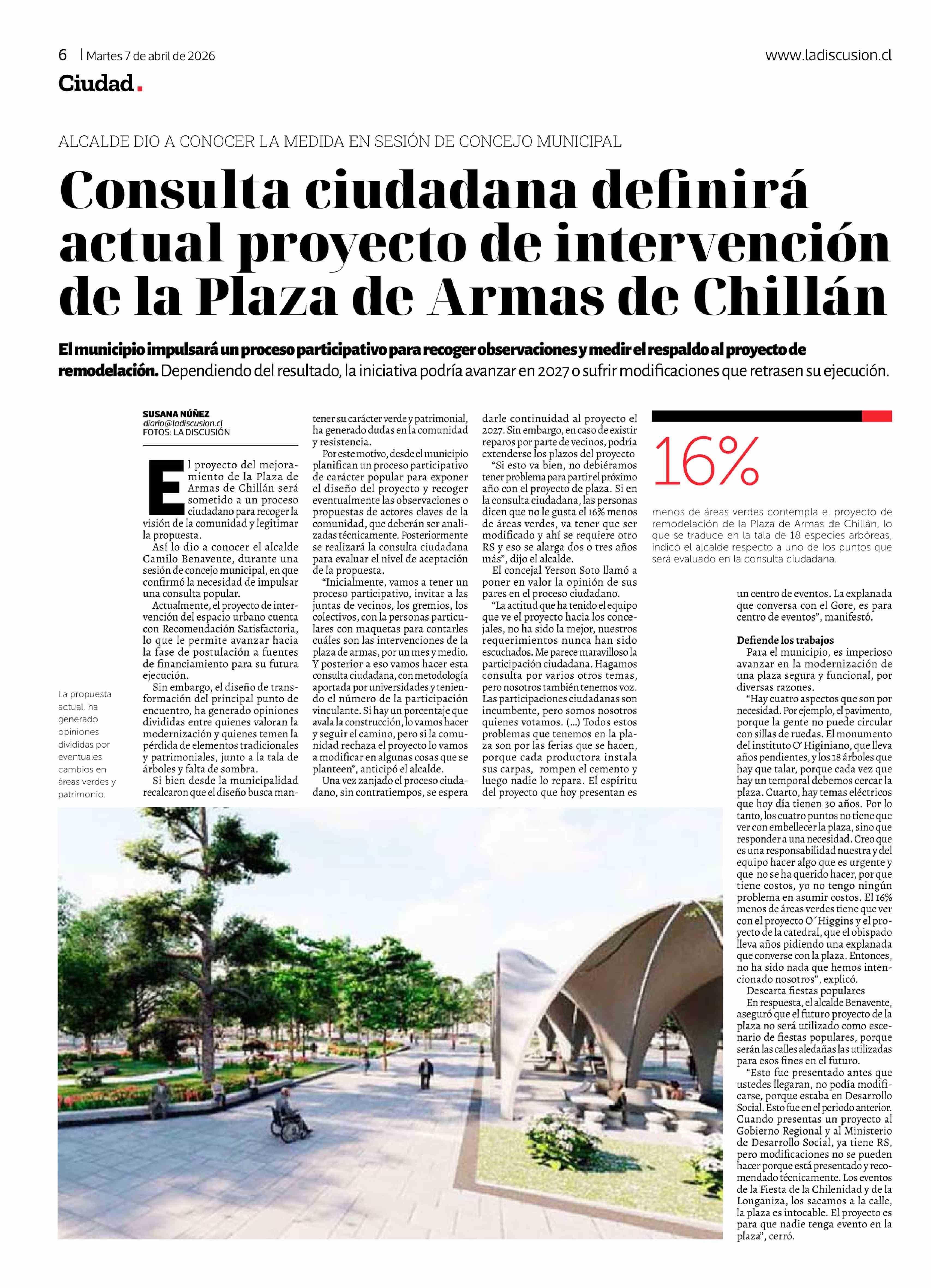 Título: Consulta ciudadana definirá actual proyecto de intervención de la Plaza de Armas de Chillán