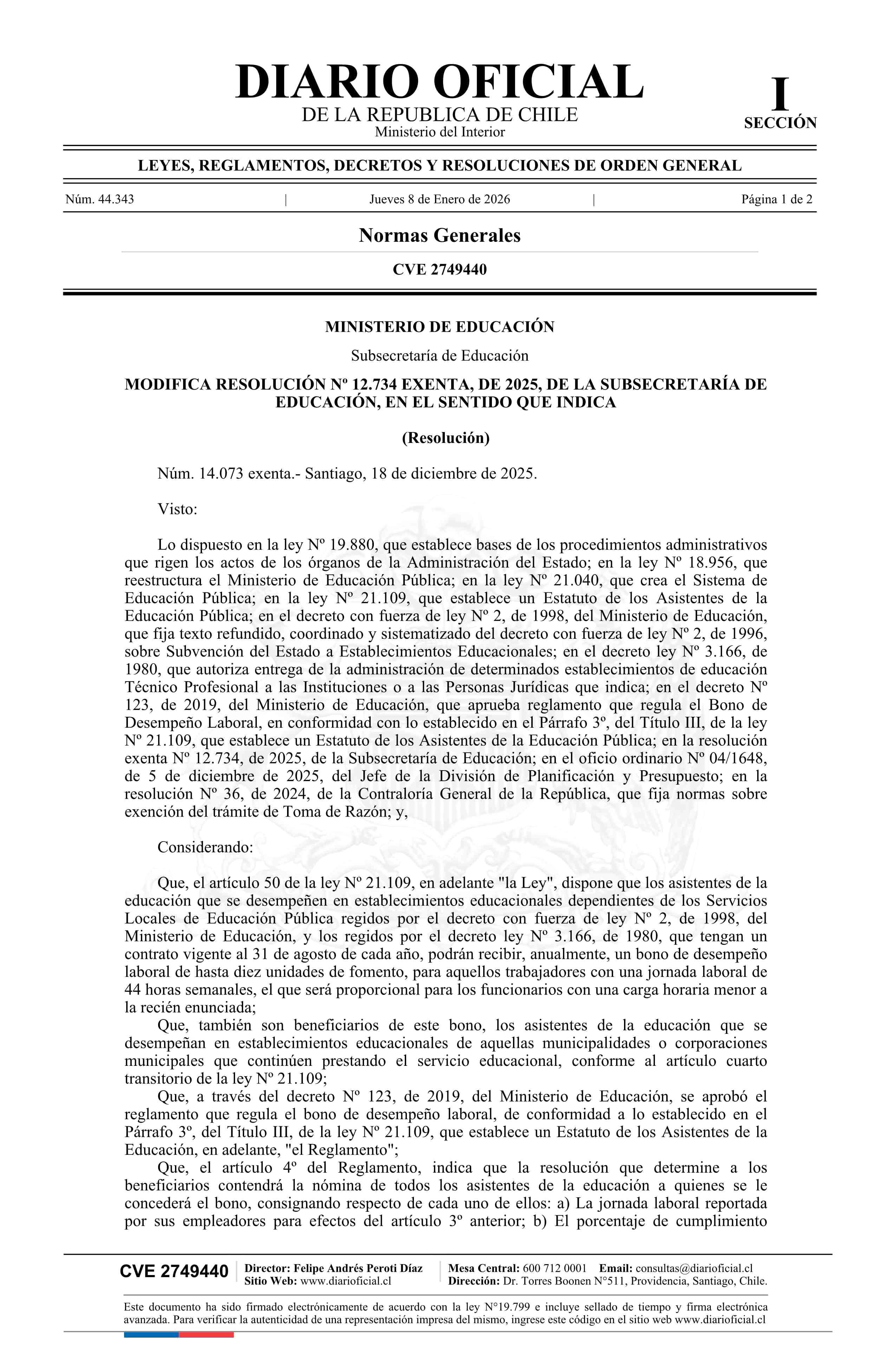 Título: Resolución exenta número 14.073, de 2025.- Modifica resolución Nº 12.734 exenta, de 2025, en el sentido que indica