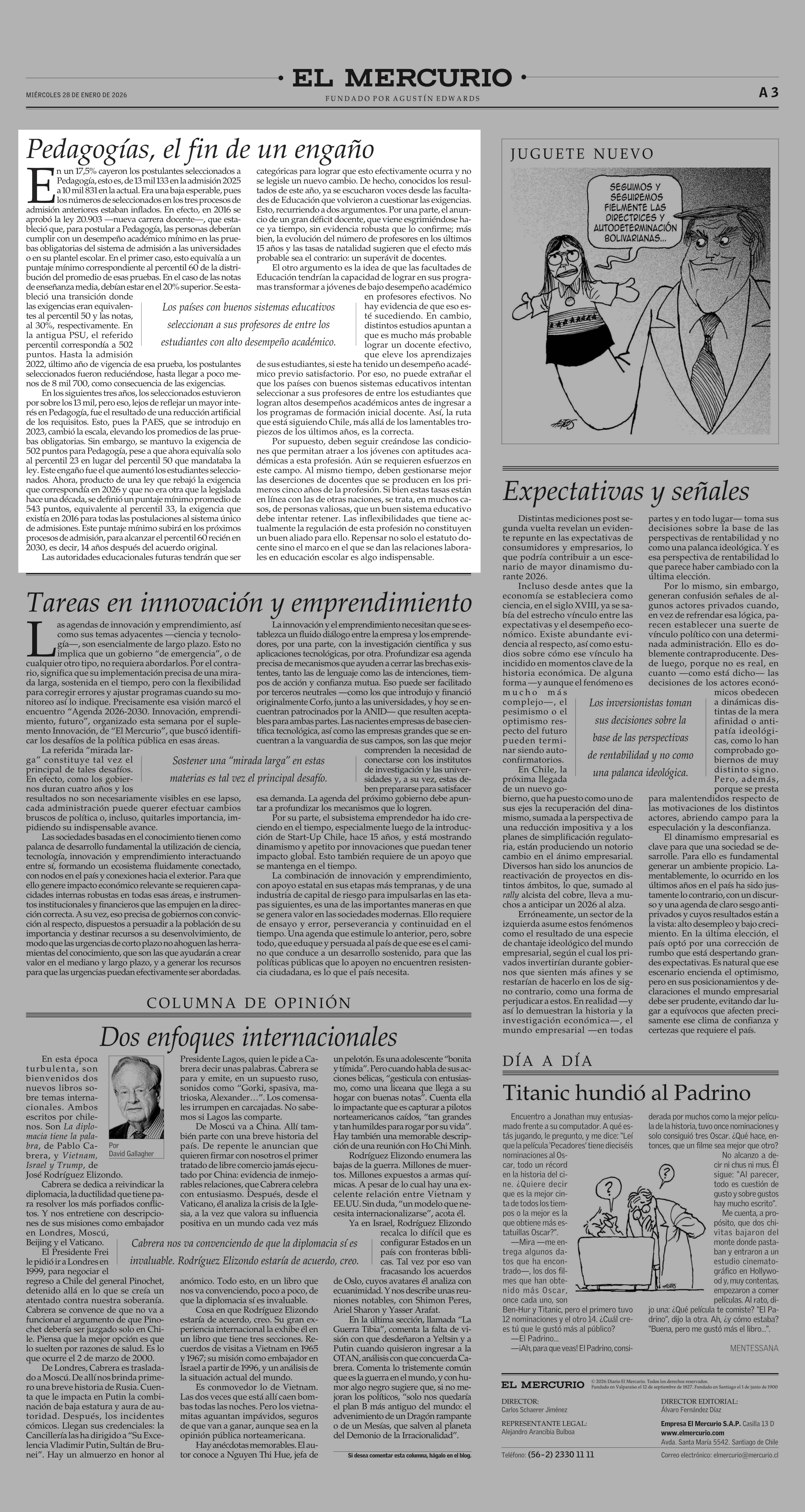 Editorial: Pedagogías, el fin de un engaño 28-01-2026 El Mercurio |