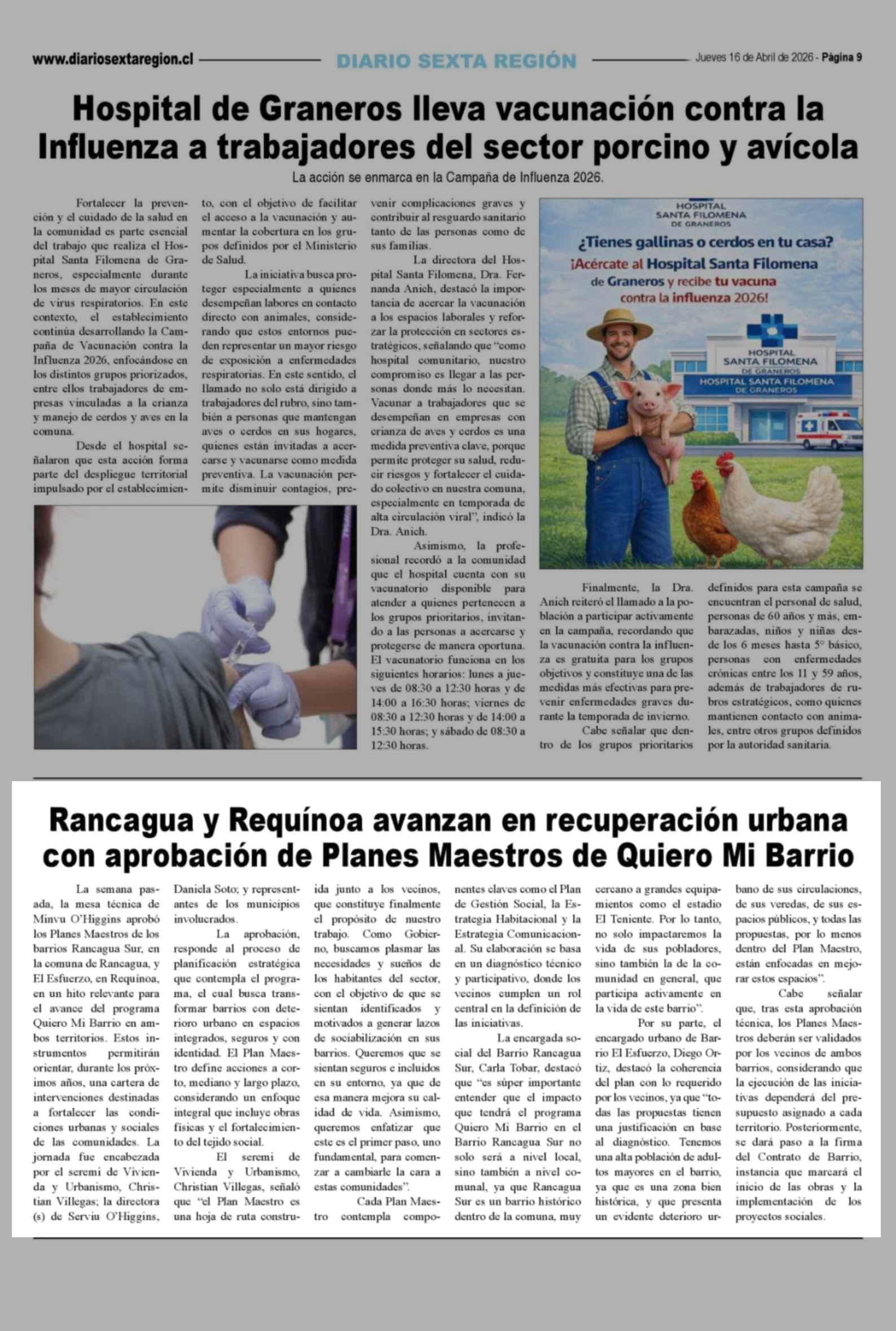 | Fecha: | 16-04-2026 | Sector: | Noticia general | Región: | Región del Libertador General Bernardo O'Higgins |