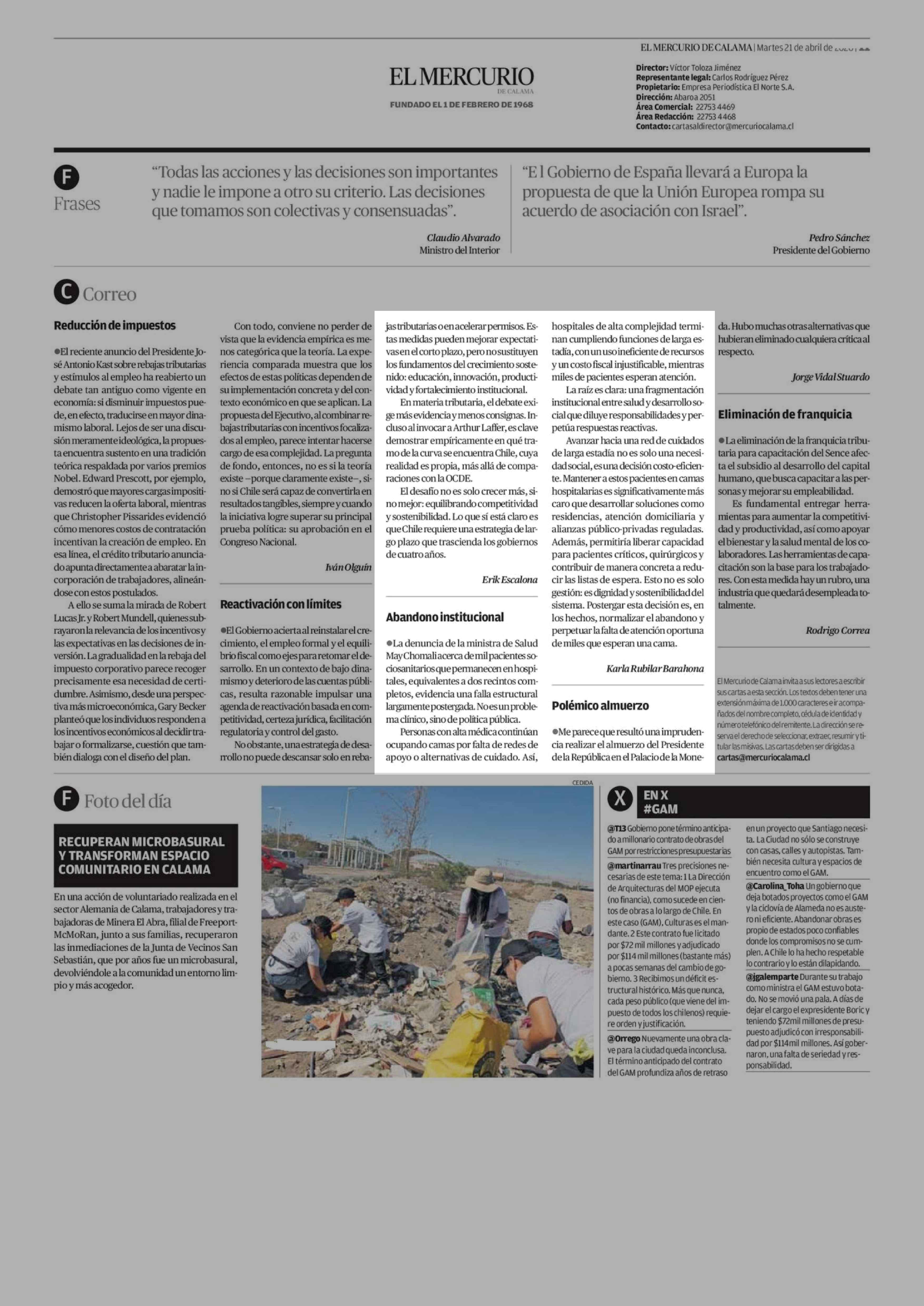 Fuente: El Mercurio de Calama (El Mercurio de Calama) Página(s): 11