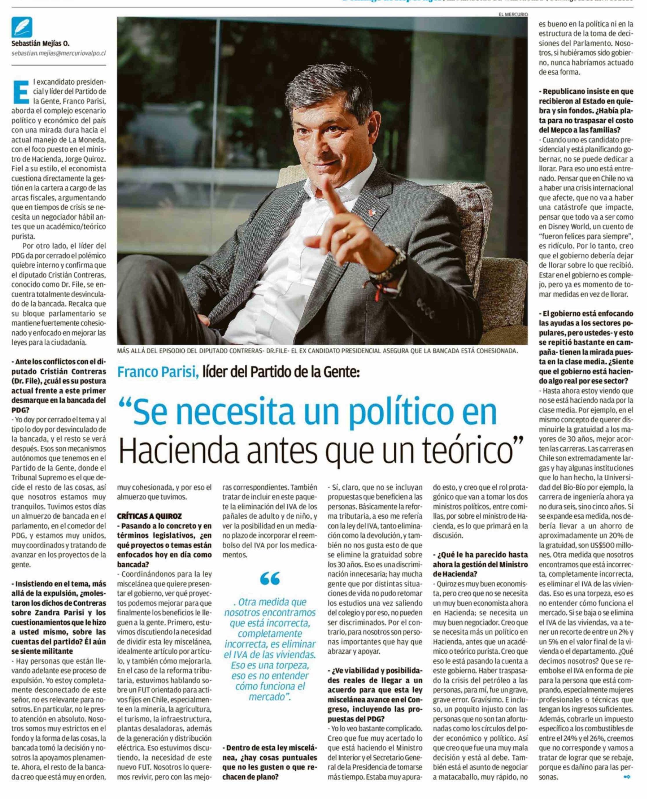 "Se necesita un político en Hacienda antes que un teórico" 12-04-2026 El Mercurio de Valparaíso |