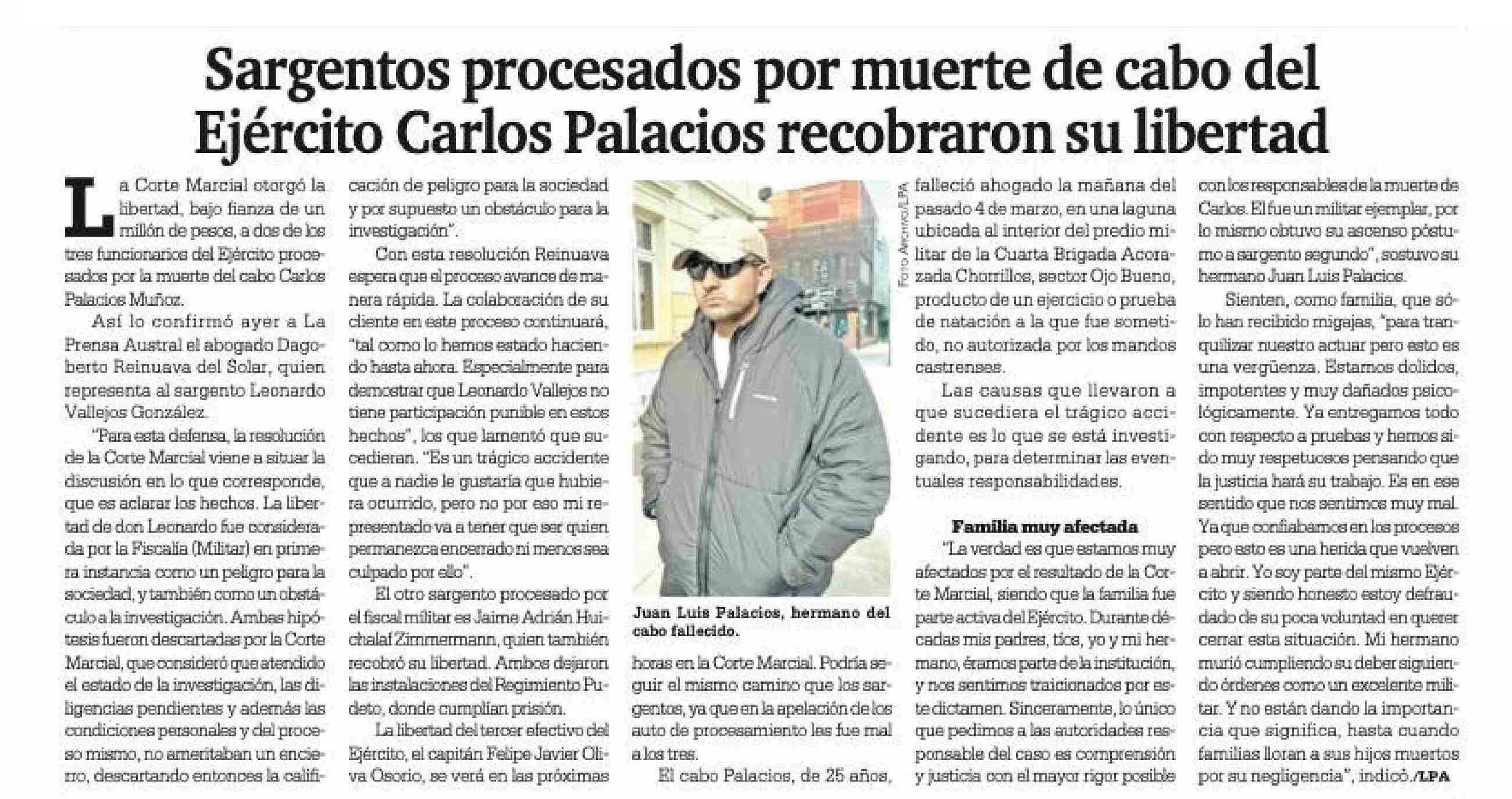 Sargentos procesados por muerte de cabo del Ejército Carlos Palacios recobraron su libertad 17-04-2026 La Prensa Austral |