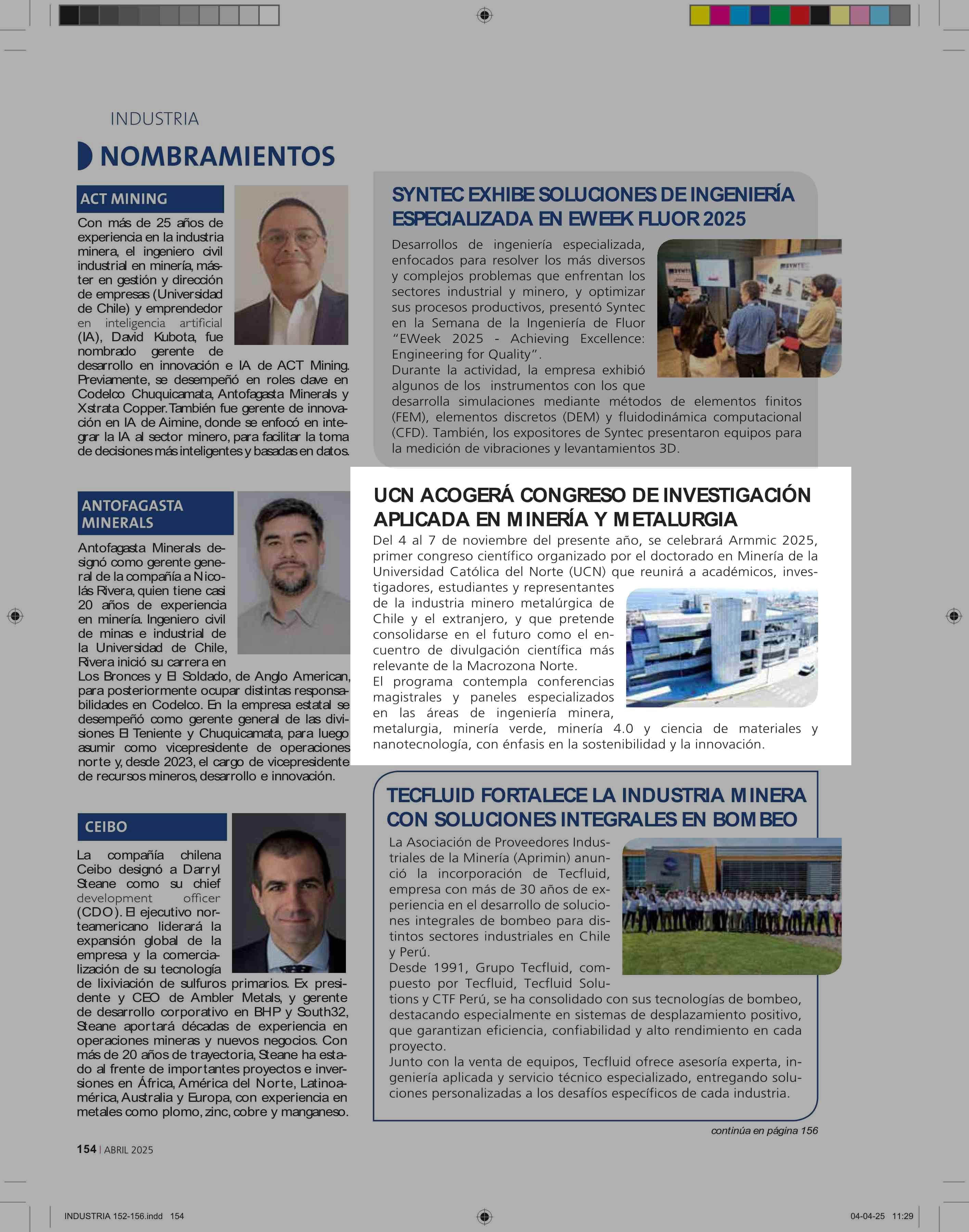 UCN ACOGERÁ CONGRESO DE INVESTIGACIÓN APUCADA EN M INERÍA Y M ETAWRGIA 14-04-2025 Revista Nueva Minería & Energía |