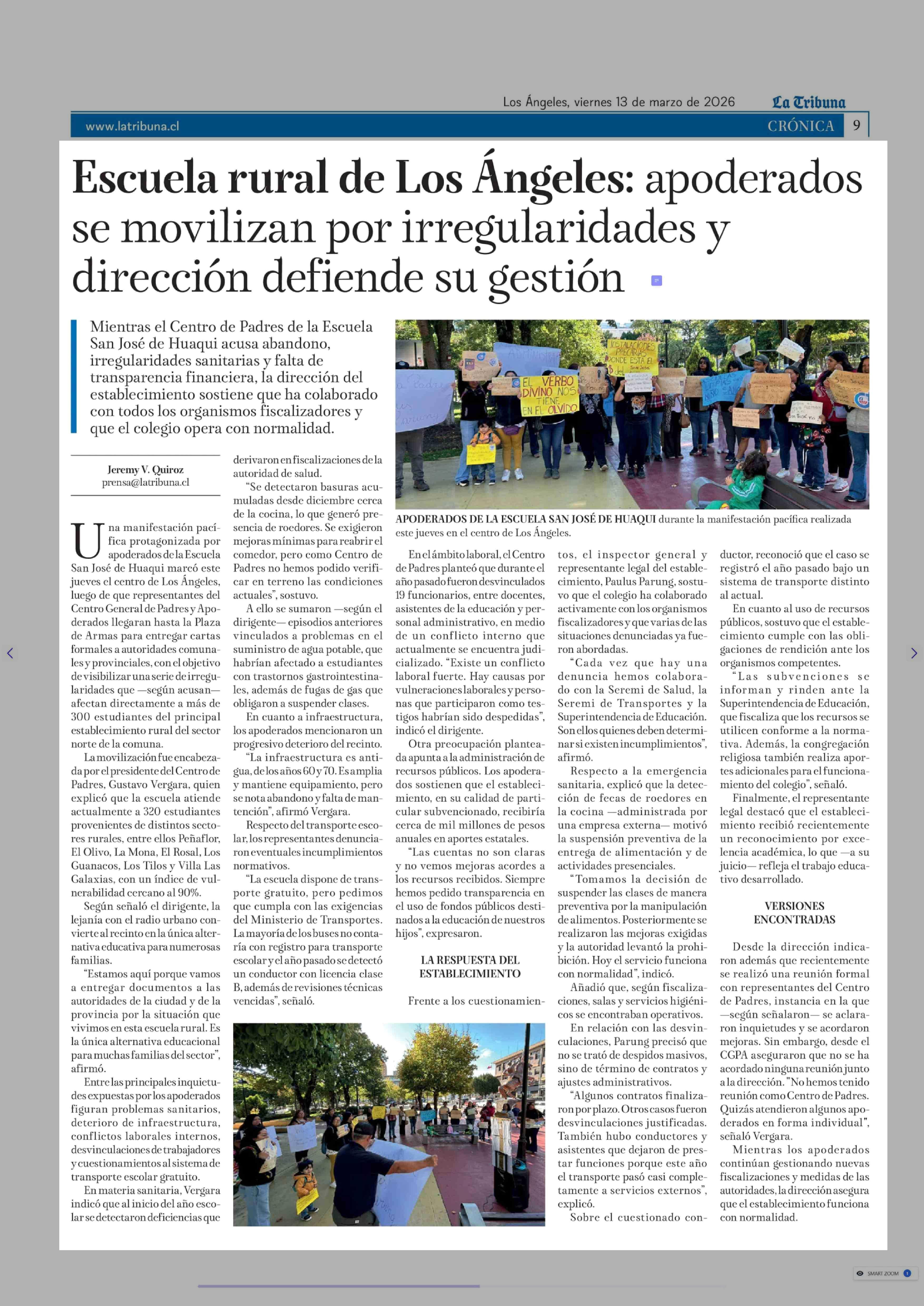 Título: Escuela rural de Los Ángeles: apoderados se movilizan por irregularidades y dirección defiende su gestión