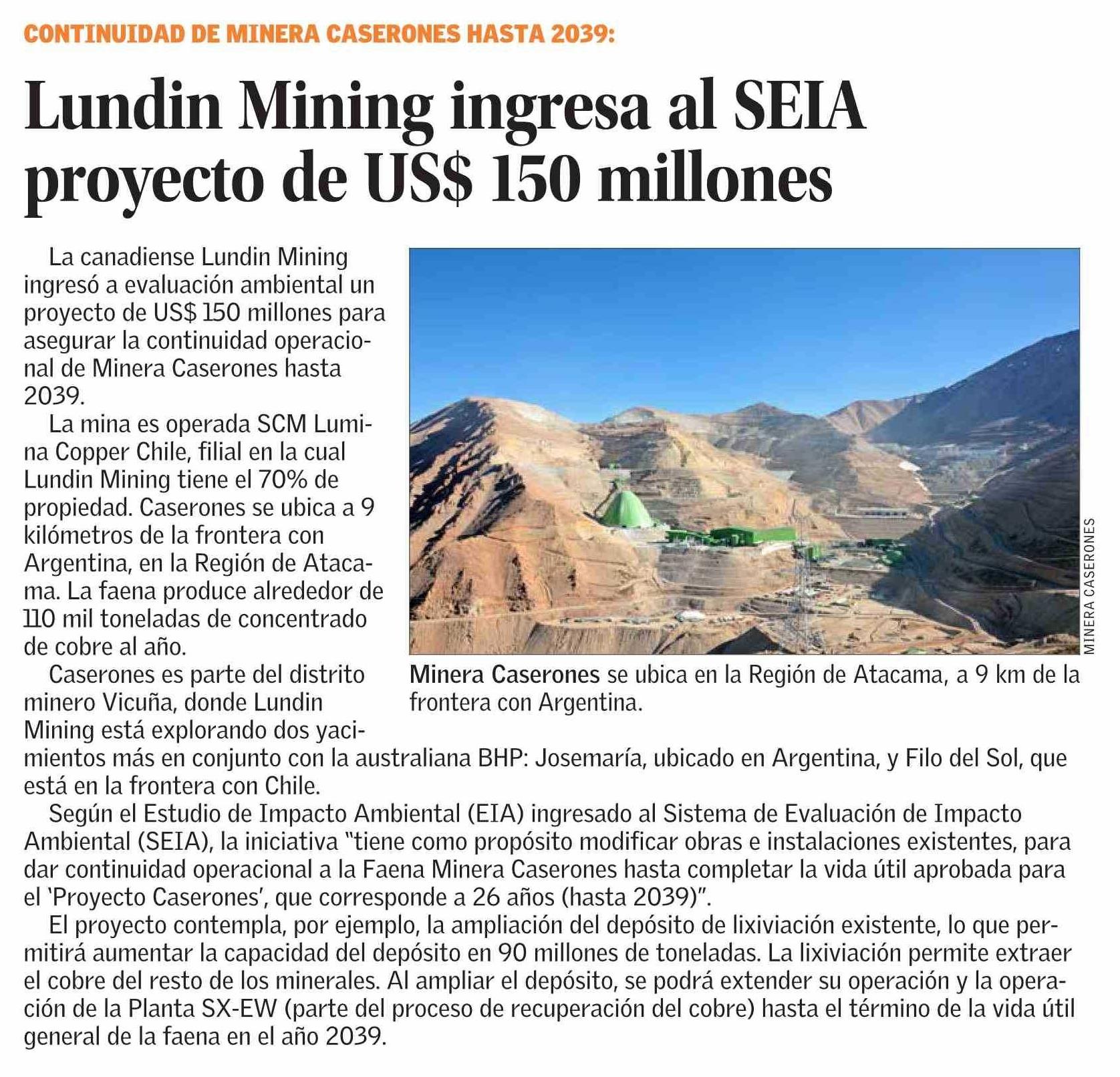 Título: Lundin Mining ingresa al SEIA proyecto de US$ 150 millones