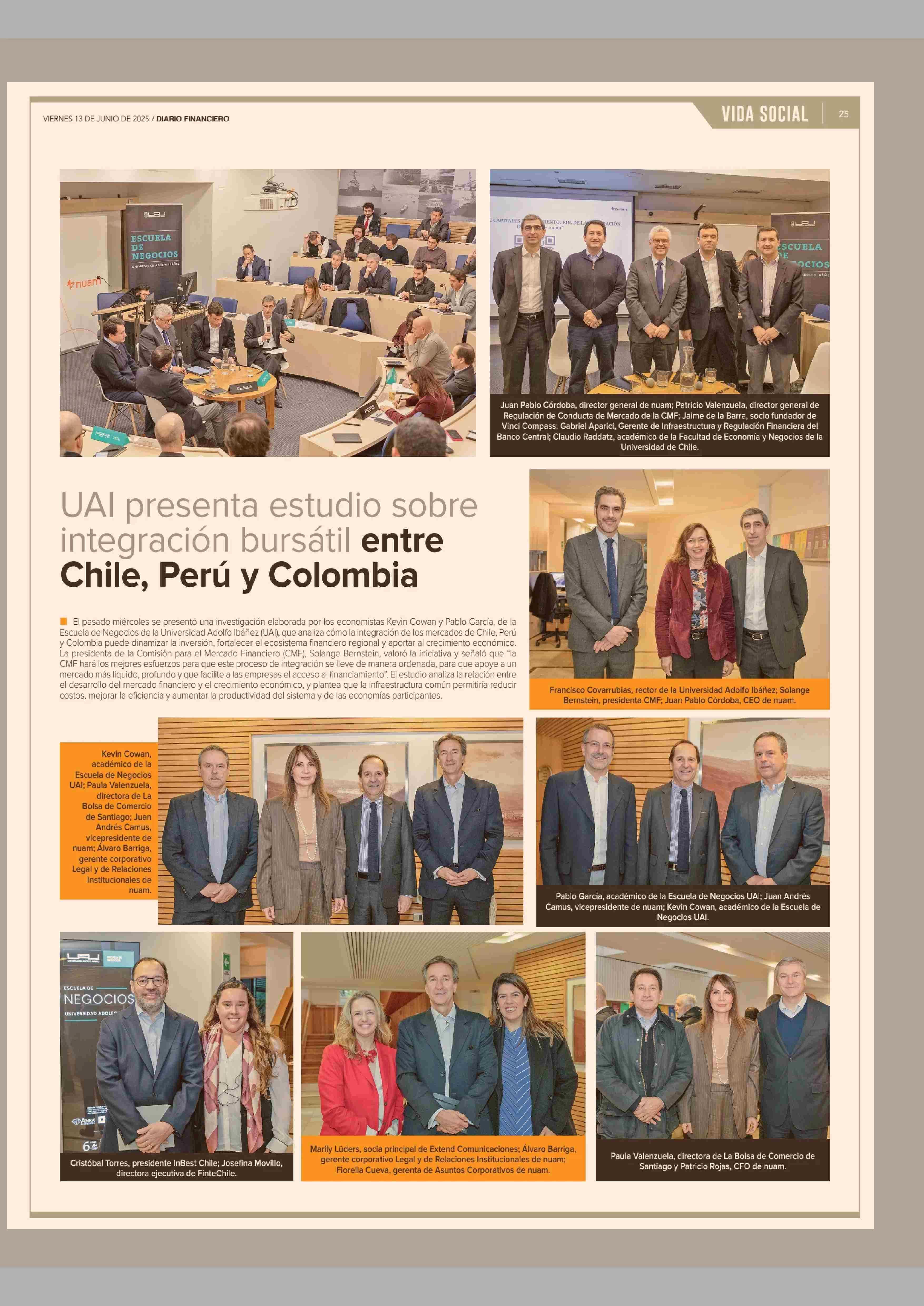 UAI presenta estudio sobre integración bursátil entre Chile, Perú y Colombia 13-06-2025 Diario Financiero |