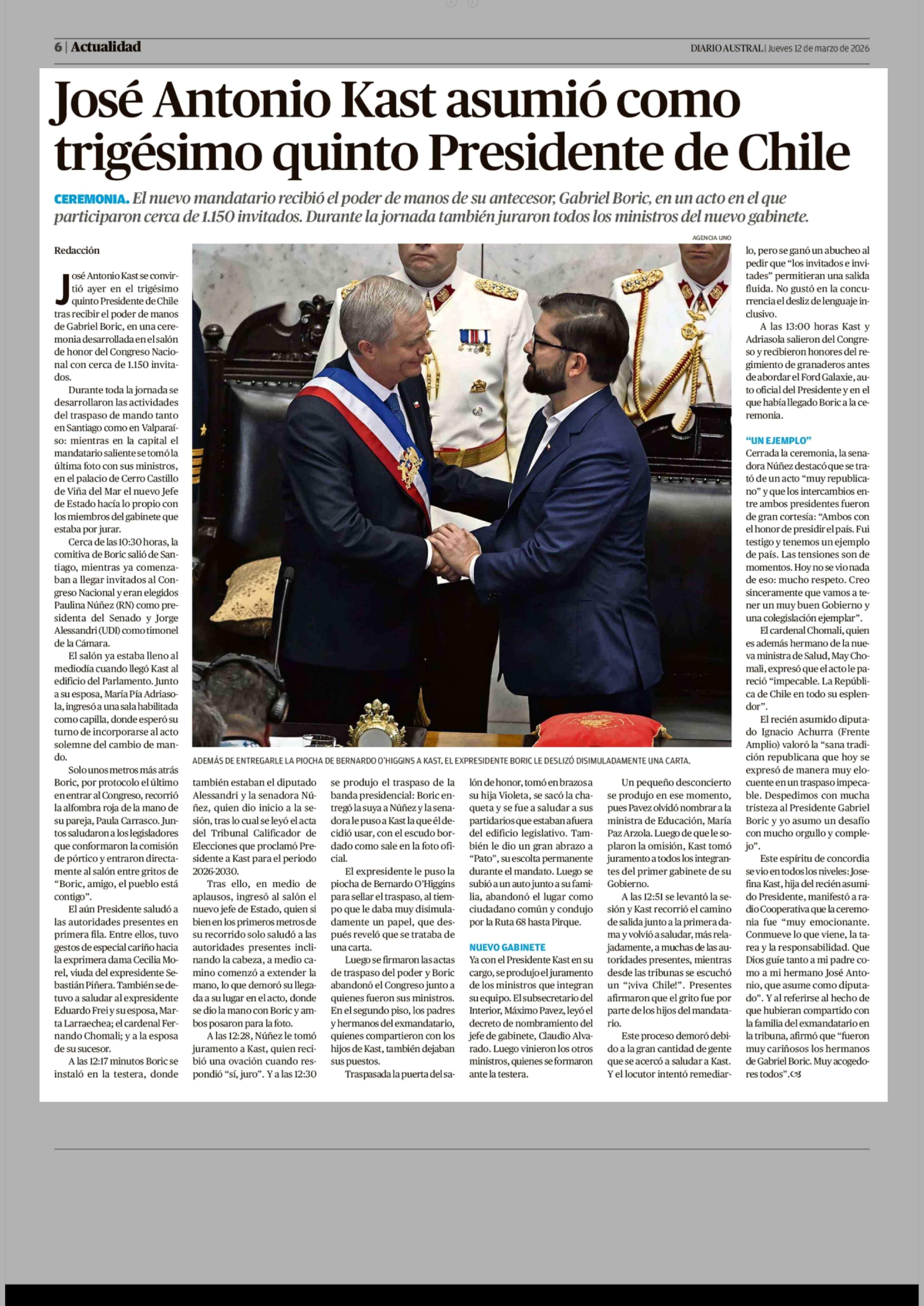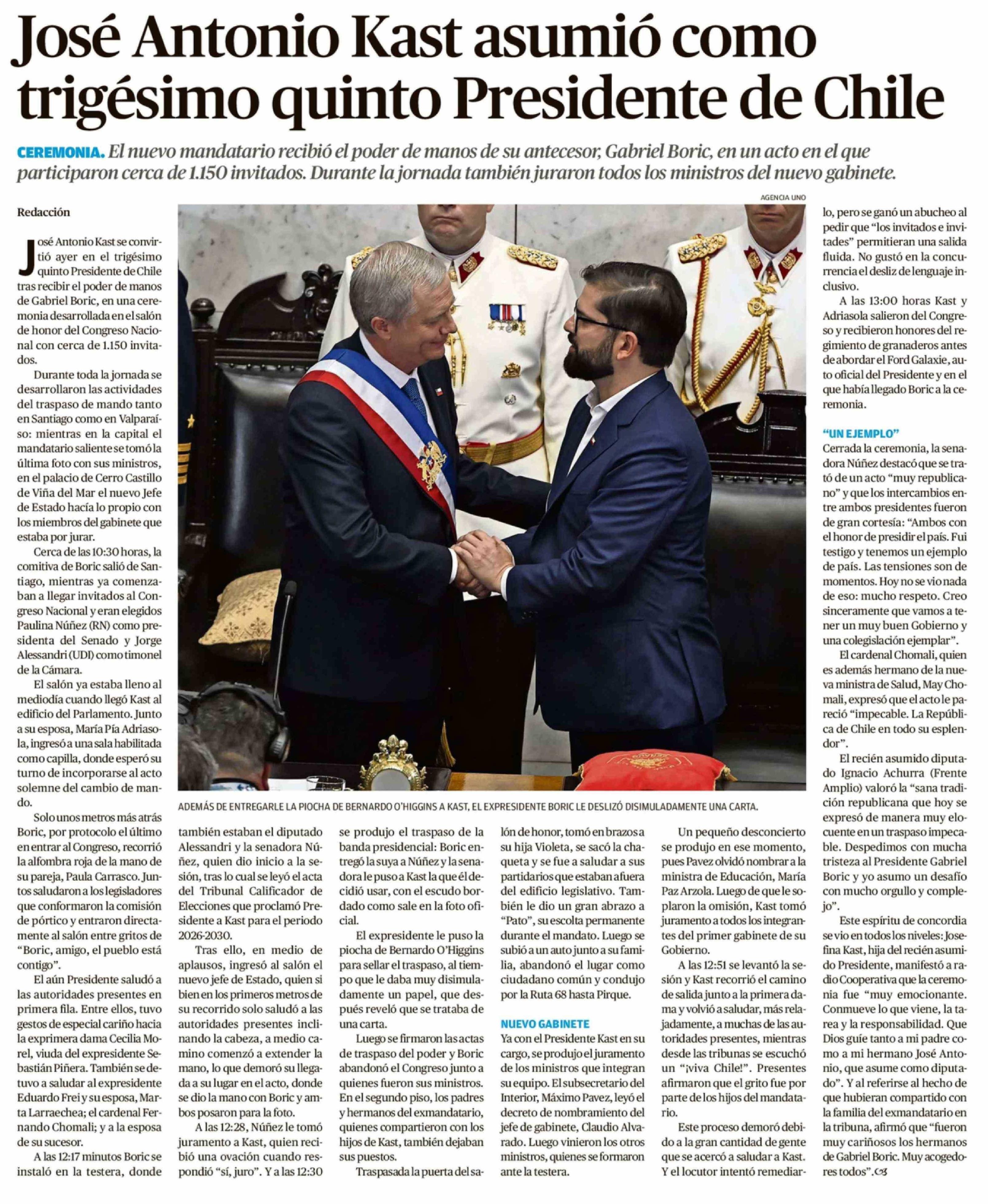 Título: José Antonio Kast asumió como trigésimo quinto Presidente de Chile