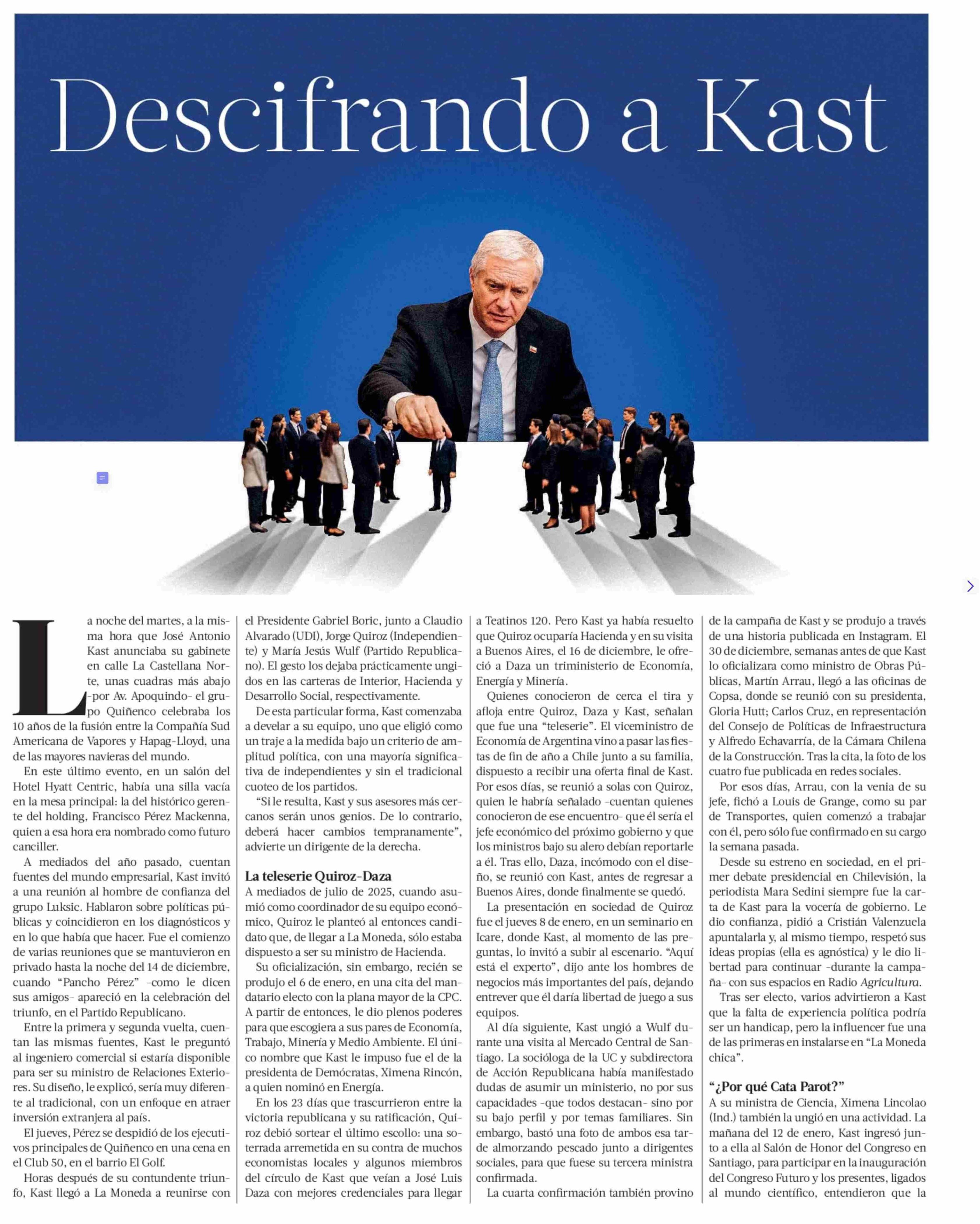 Las historias detrás de su primer gabinete 25-01-2026 La Tercera |