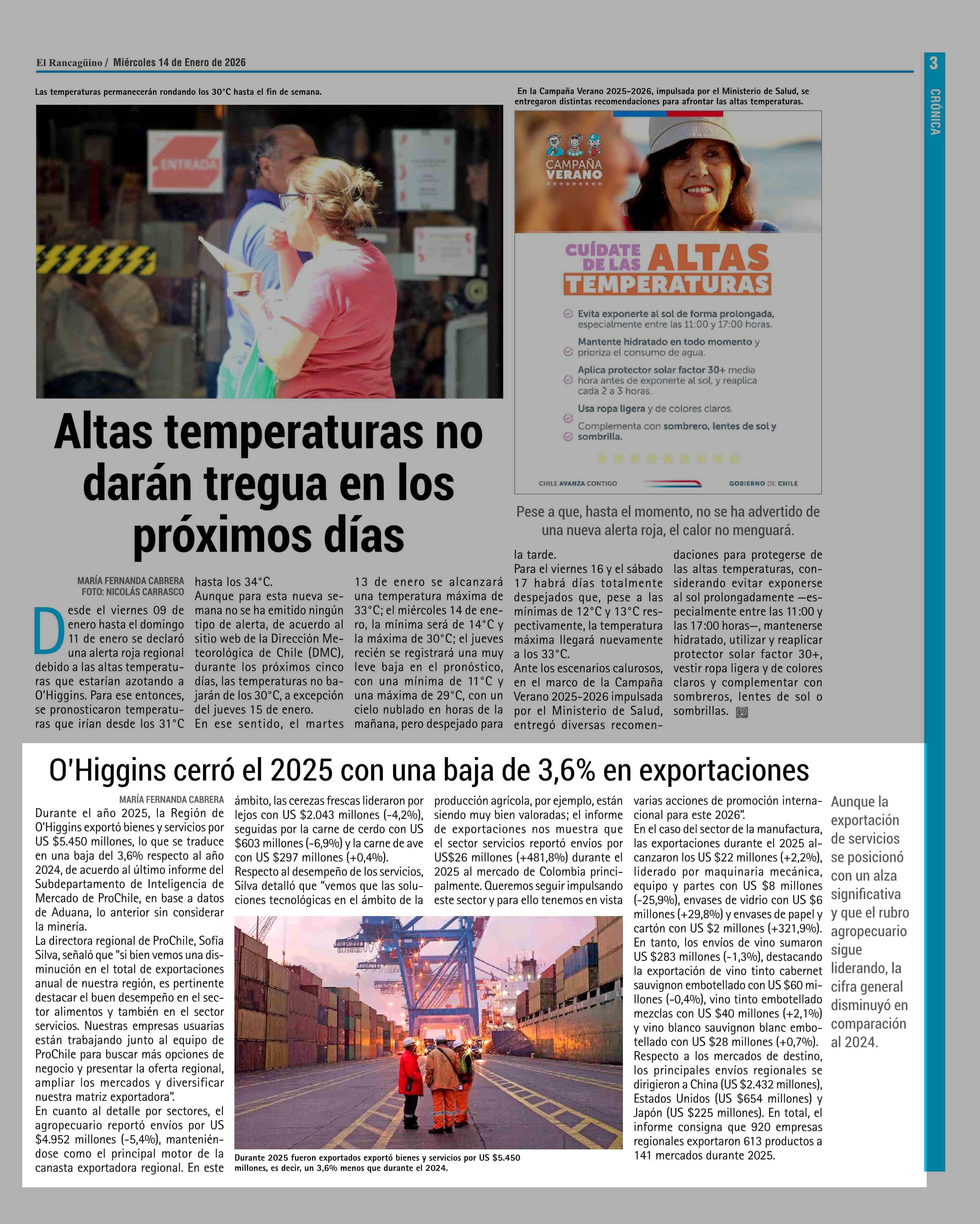 Fecha: 14-01-2026 Sector: Noticia general Región: Región del Libertador General Bernardo O'Higgins