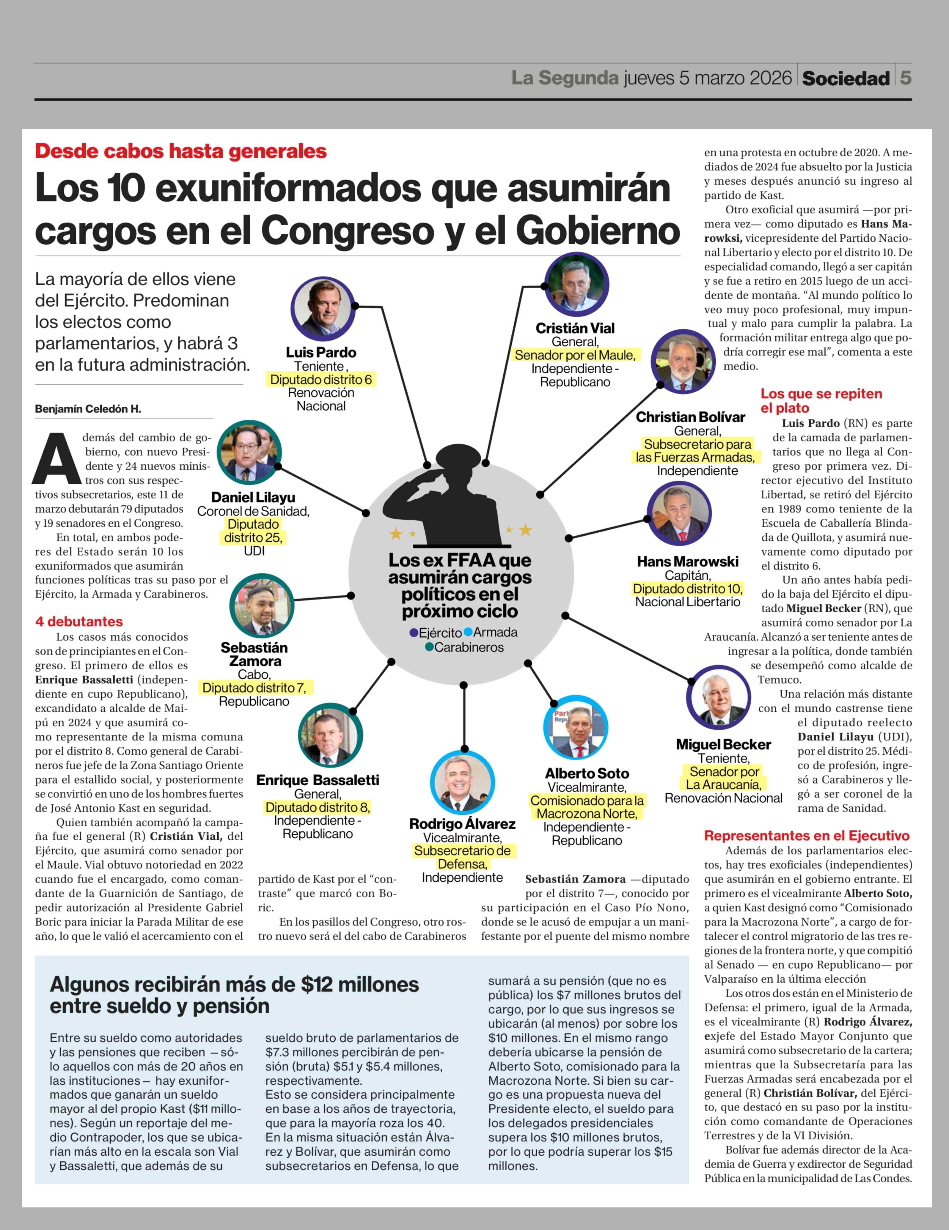 Los 10 exuniformados que asumirán cargos en el Congreso y el Gobierno 05-03-2026 La Segunda |