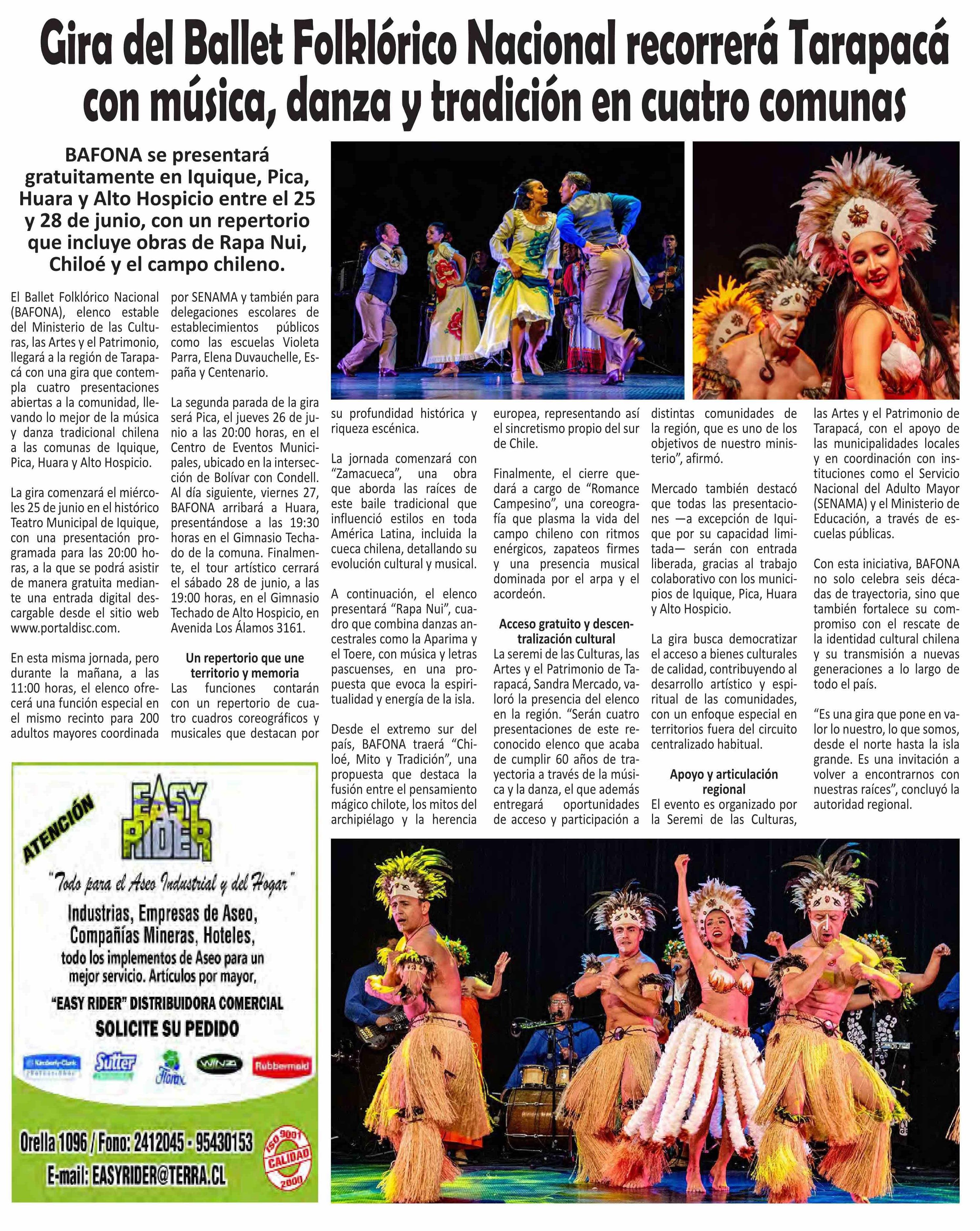 | Título: | Gira del Ballet Folklórico Nacional recorrerá Tarapacá con música, danza y tradición en cuatro comunas |