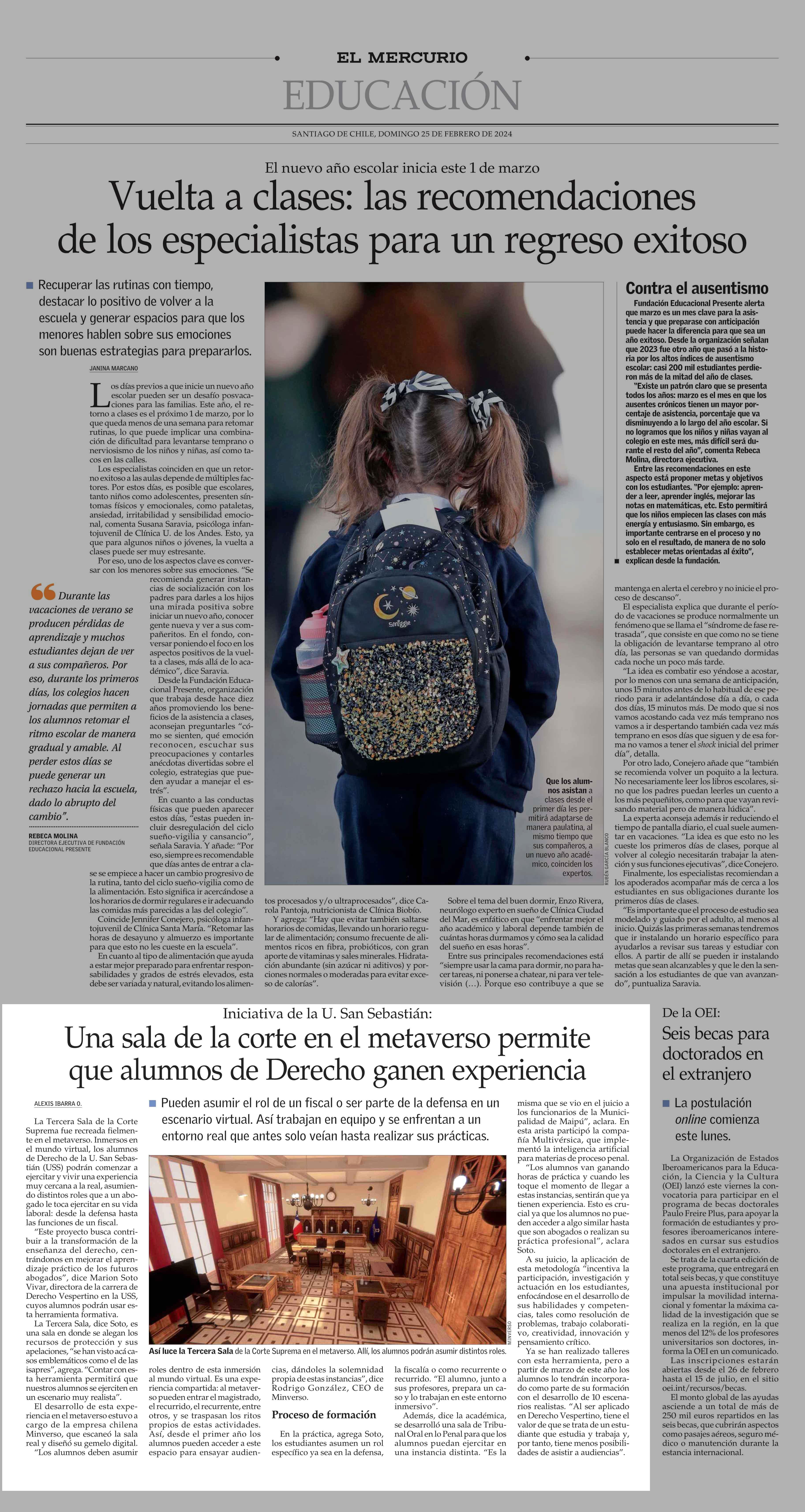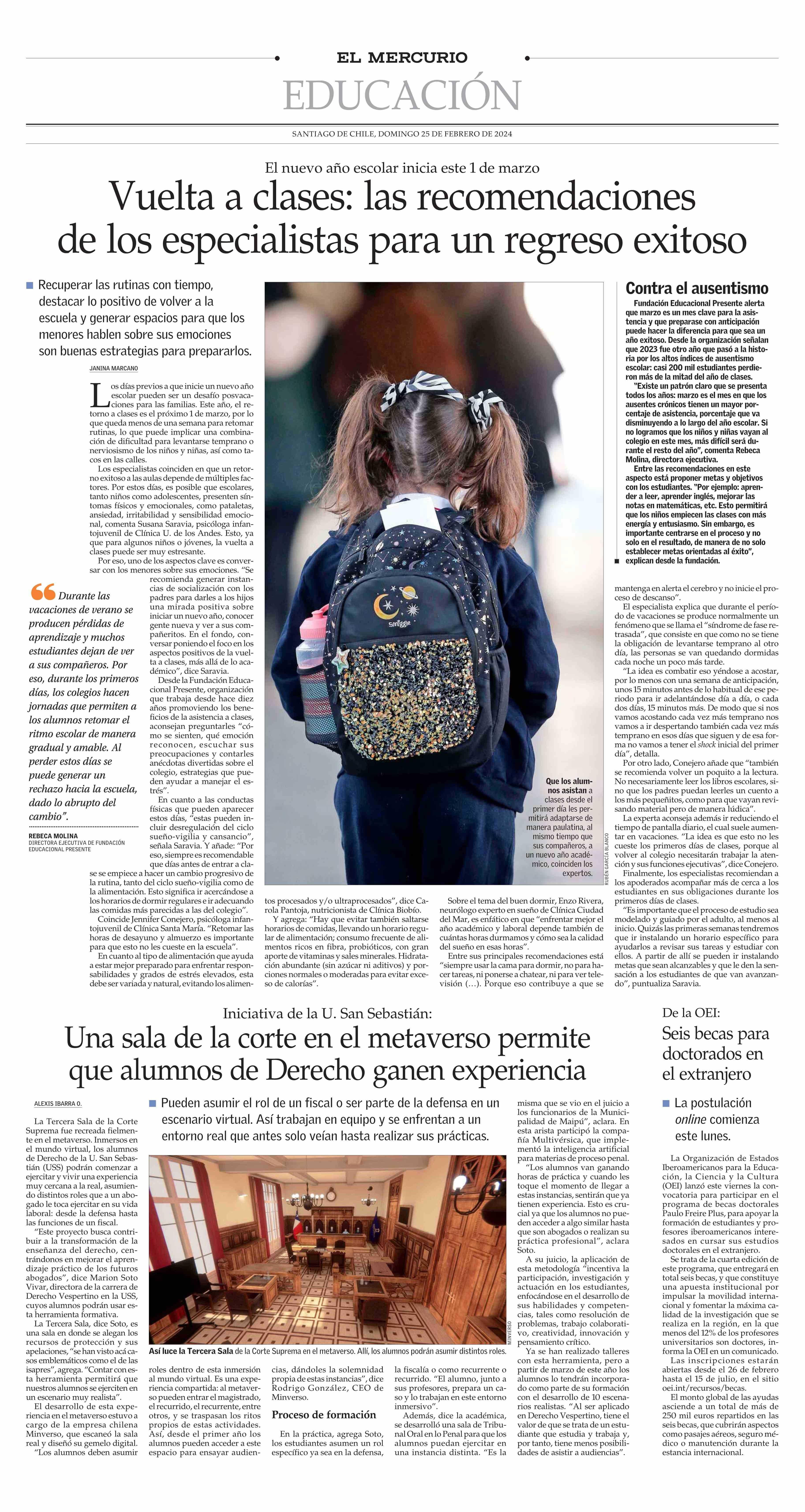 Una sala de la corte en el metaverso permite que alumnos de Derecho ganen experiencia 25-02-2024 El Mercurio |