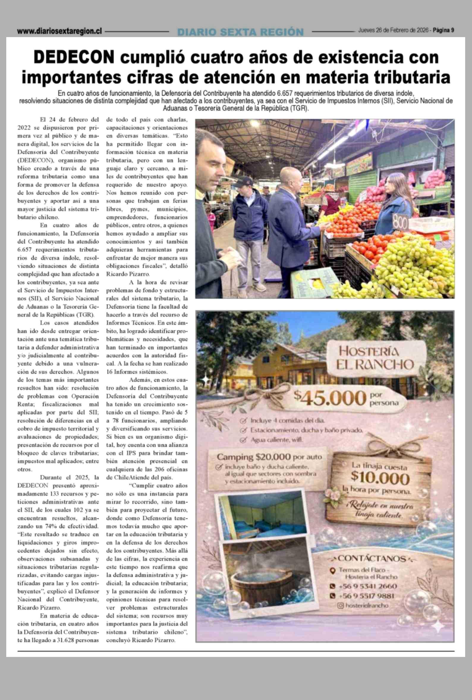 DEDECON cumplió cuatro años de existencia con importantes cifras de atención en materia tributaria 26-02-2026 Diario VI Región |