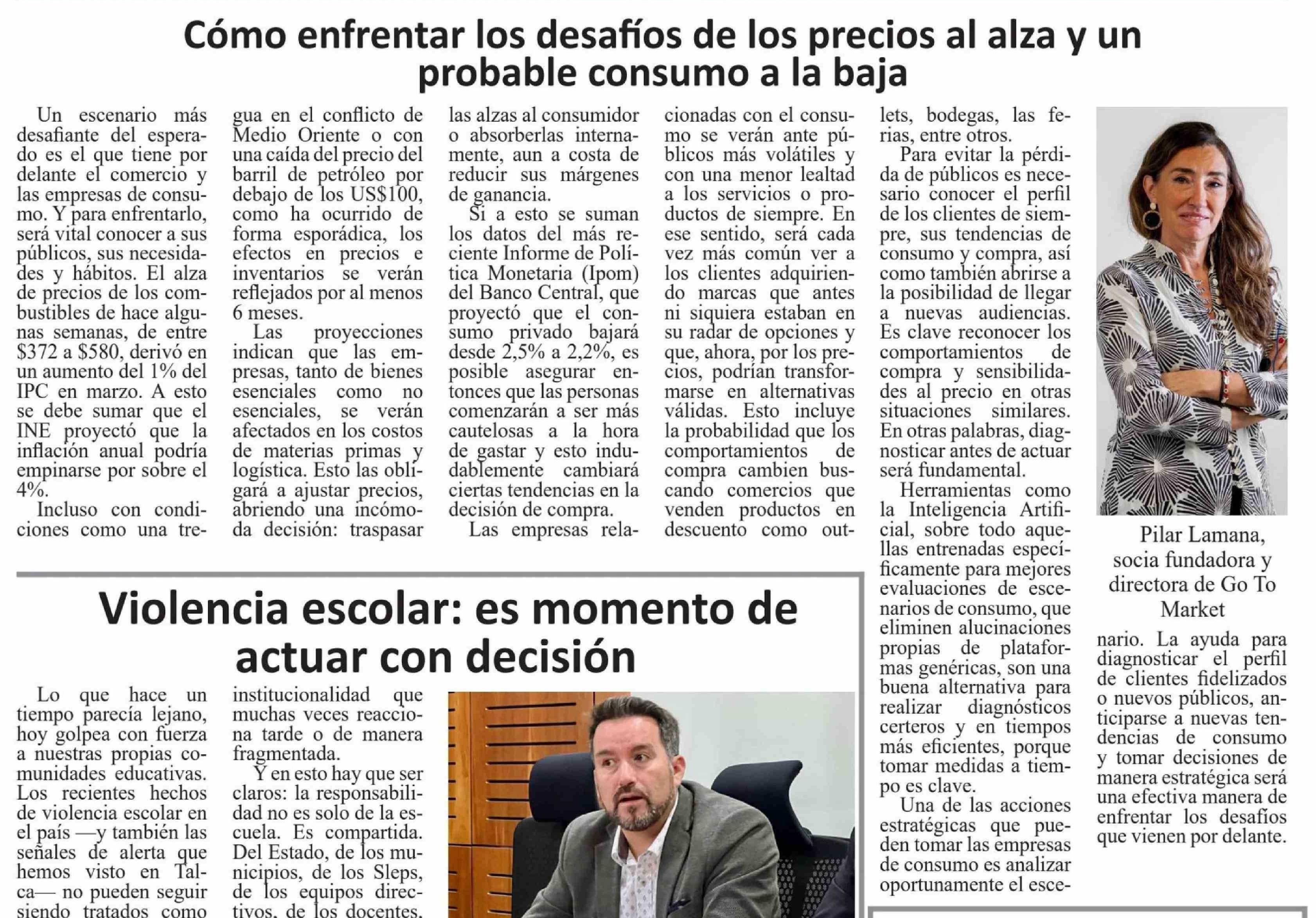 Título: Columnas de Opinión: Cómo enfrentar los desafíos de los precios al alza y un probable consumo a la baja