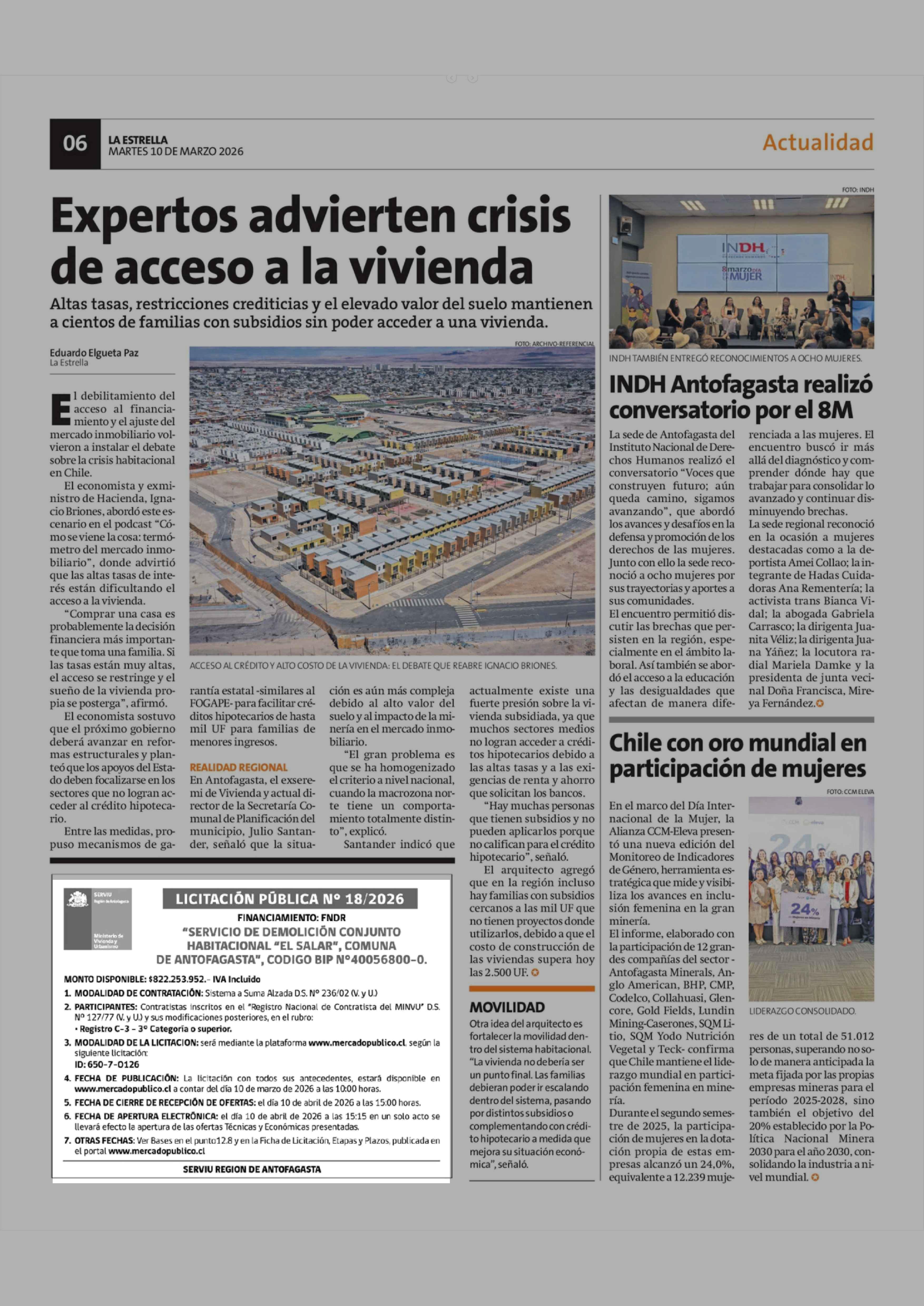 Aviso Licitaciones: LICITACIÓN PÚBLICA Nº 18/2026 10-03-2026 La Estrella de Antofagasta |