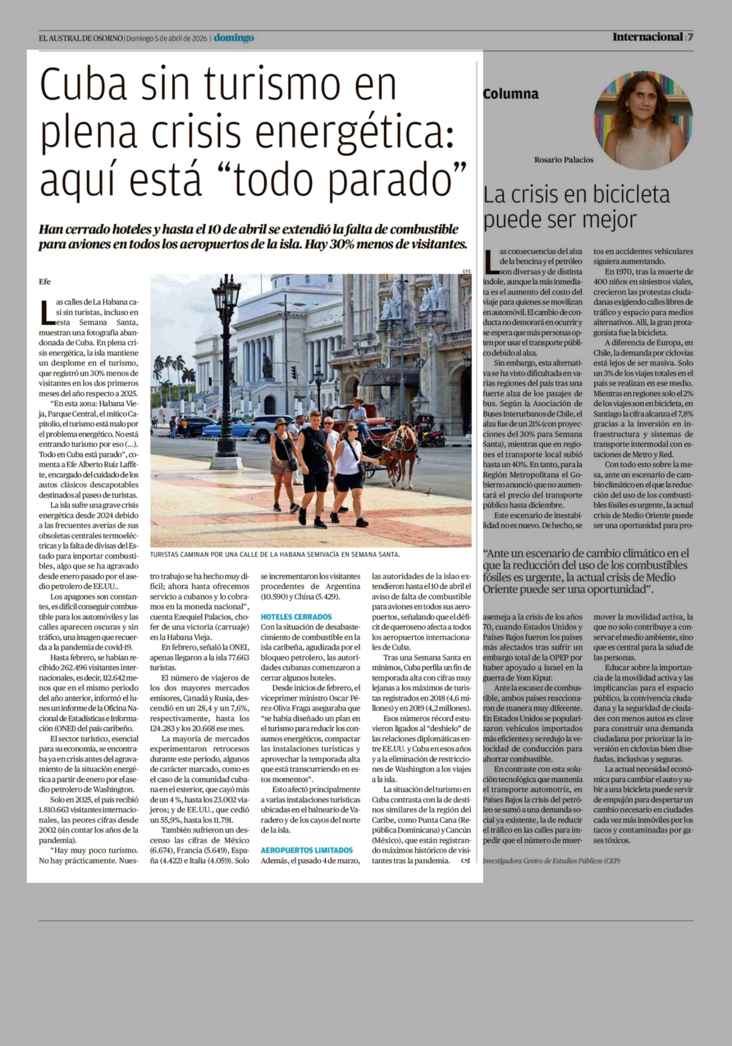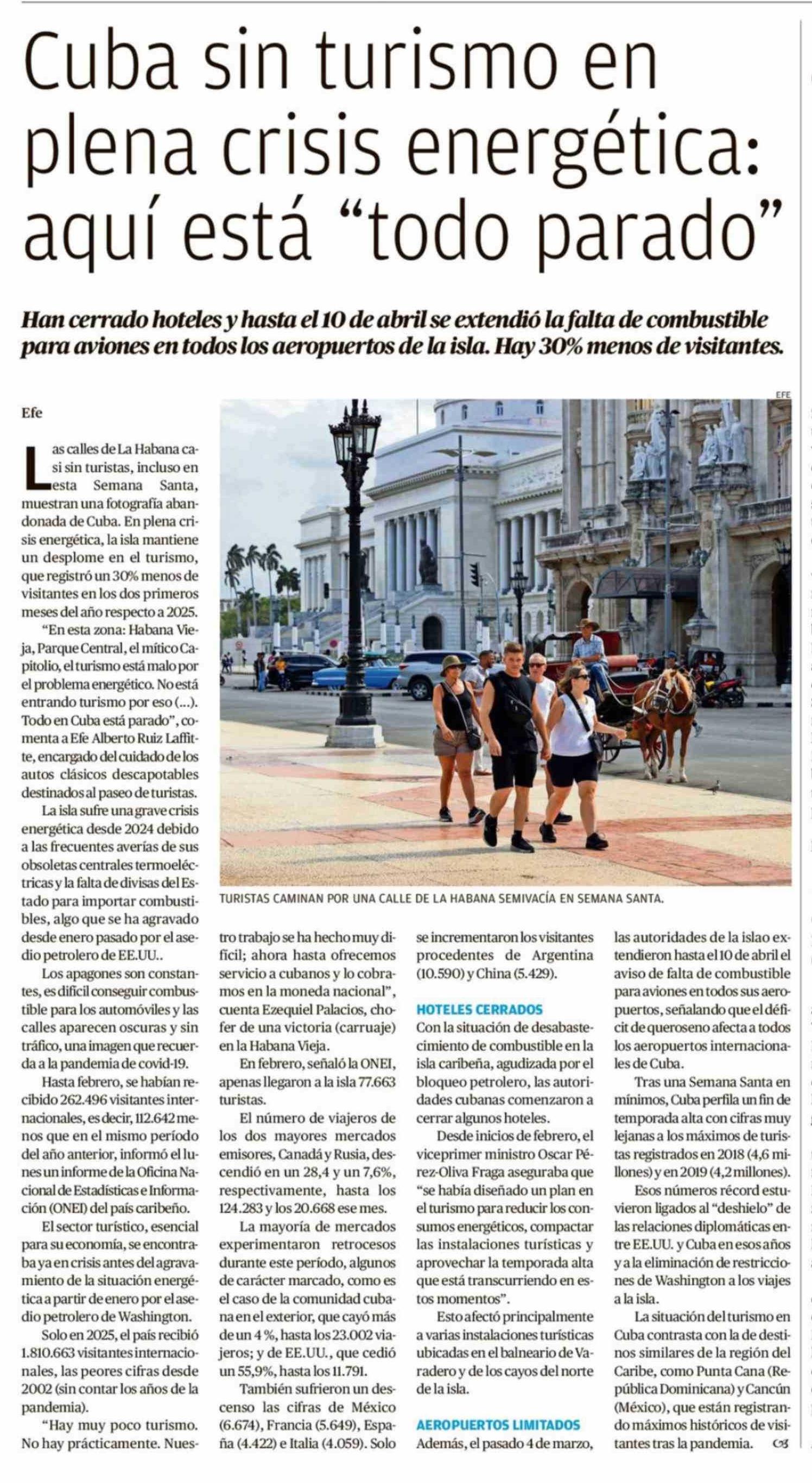 Cuba sin turismo en plena crisis energética: aquí está "todo parado" 05-04-2026 El Austral de Osorno |