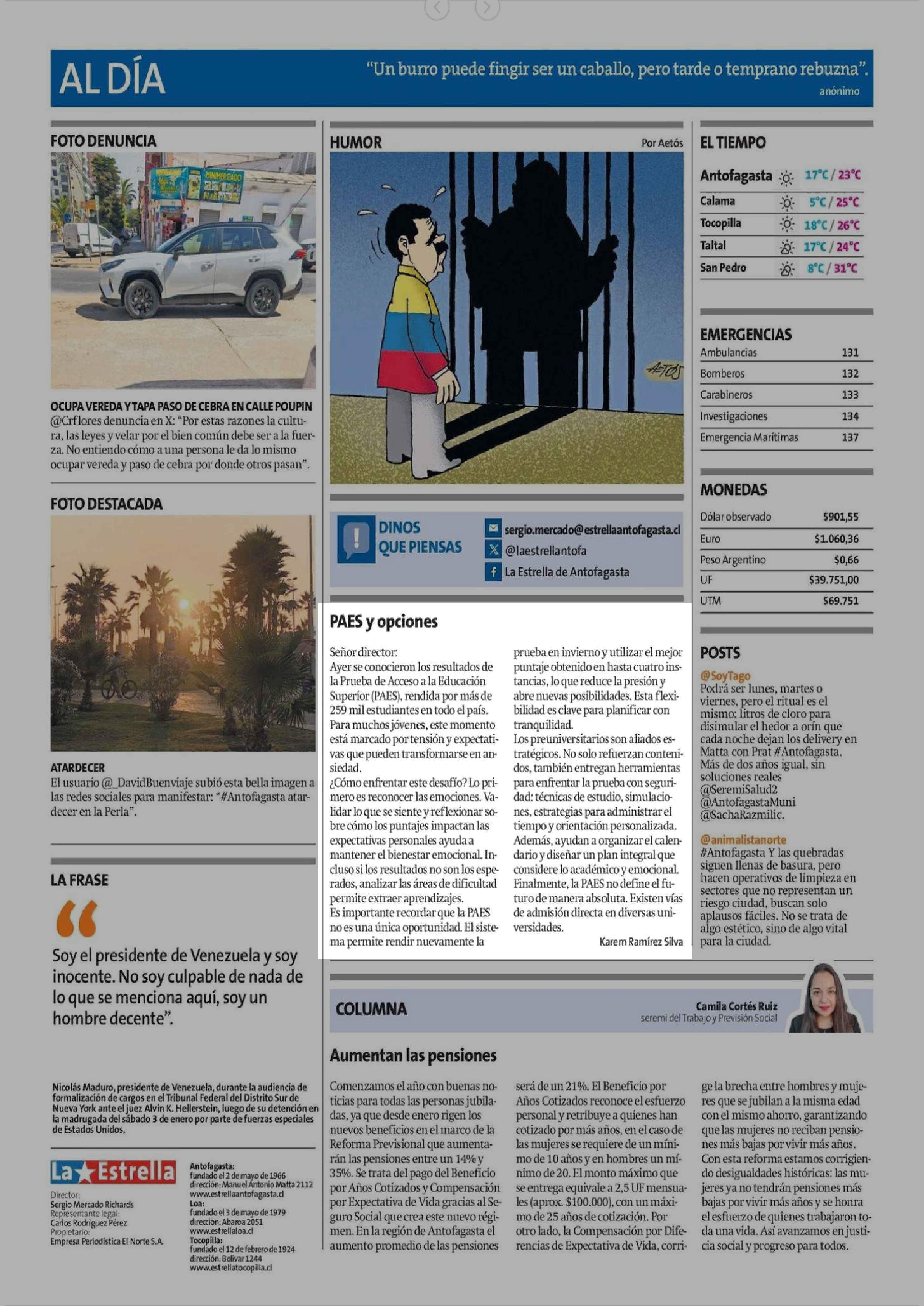 Cartas: PAES y opciones 06-01-2026 La Estrella de Antofagasta |