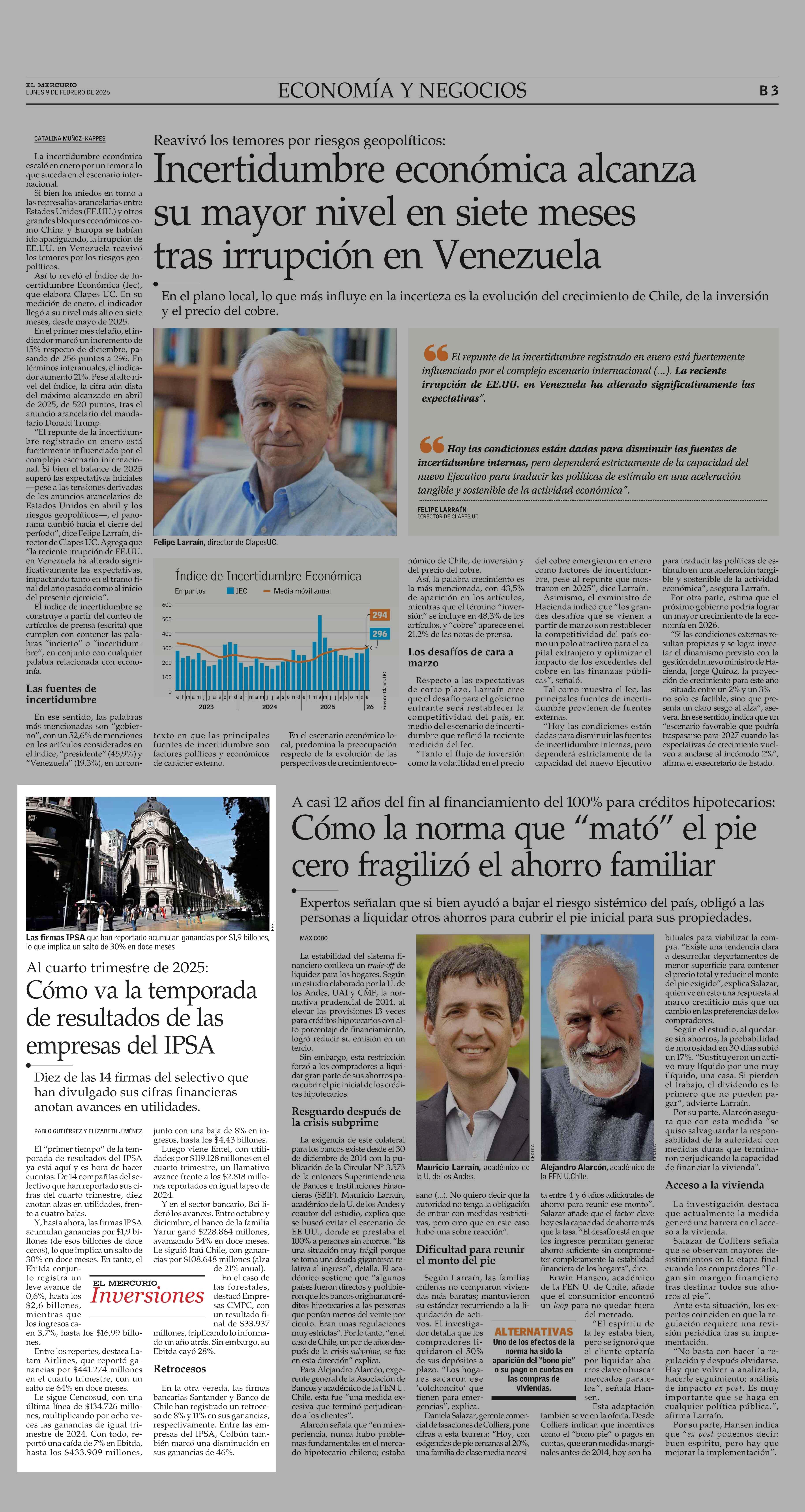 Cómo va la temporada de resultados de las empresas del IPSA 09-02-2026 El Mercurio |