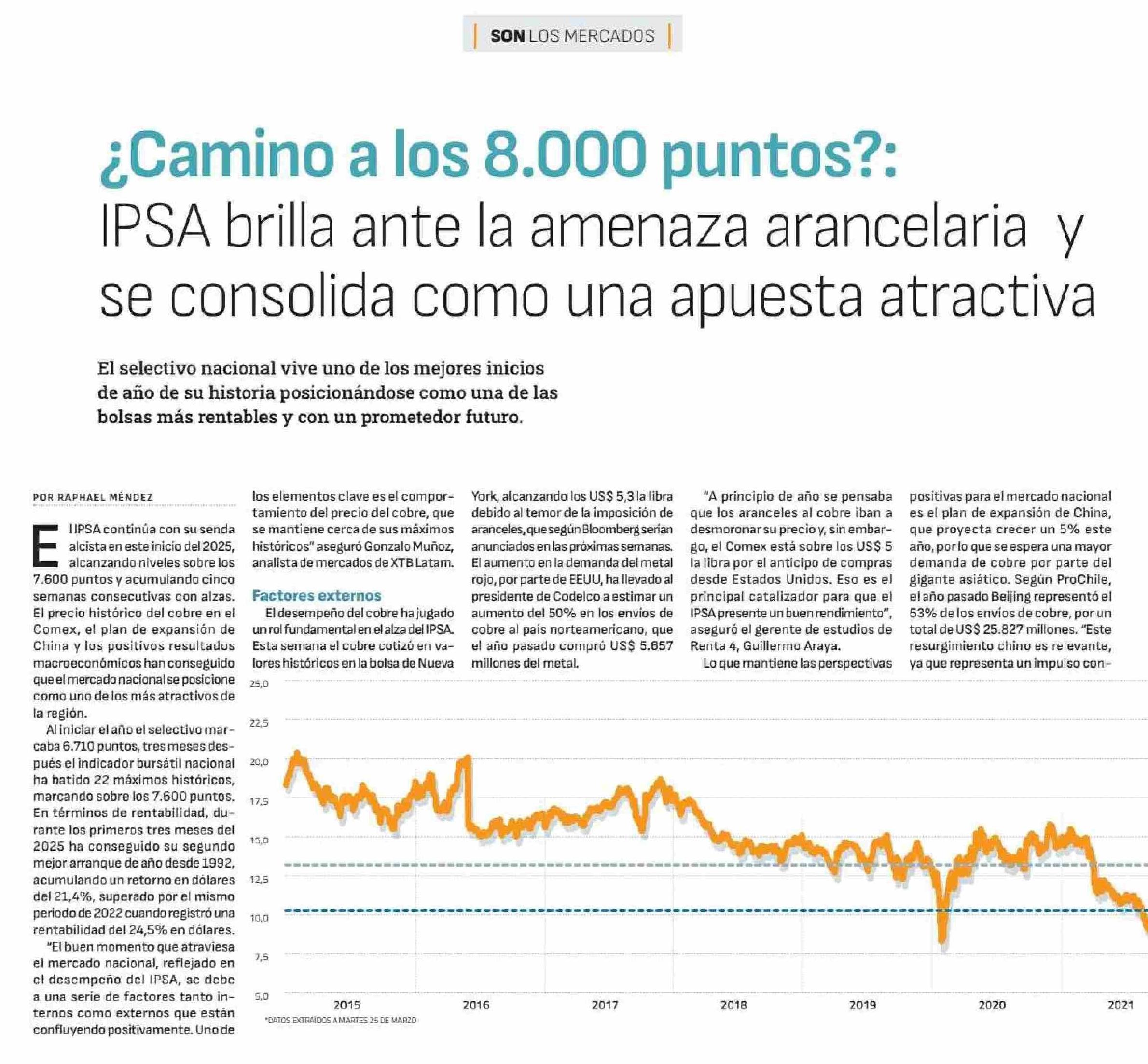 ¿Camino a los 8.000 puntos?: IPSA brilla ante la amenaza arancelaria y se consolida como una apuesta atractiva 29-03-2025 Diario Financiero |